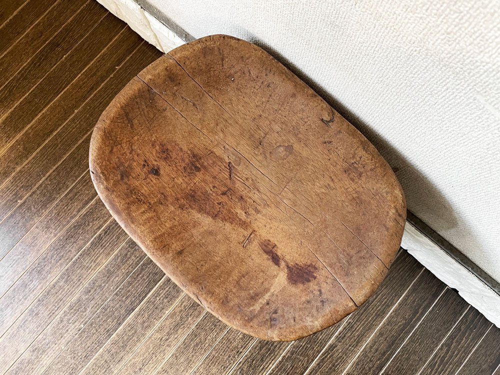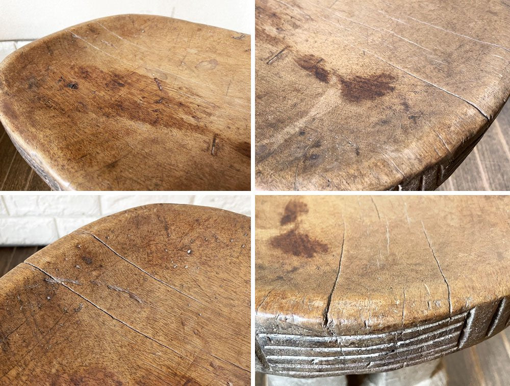 使用や経年により磨きがかかり艶やかになった座面の木肌とやや乾燥した脚部のコントラストに、手作りの良さを感じて頂けます。