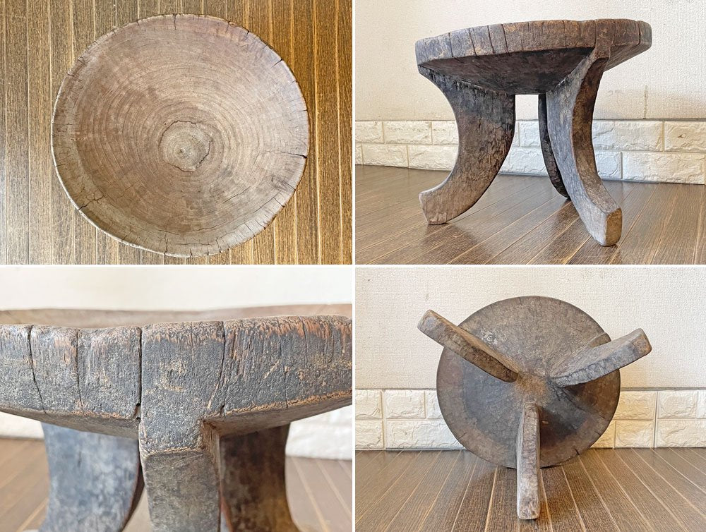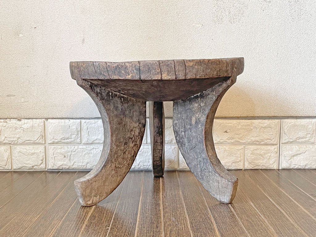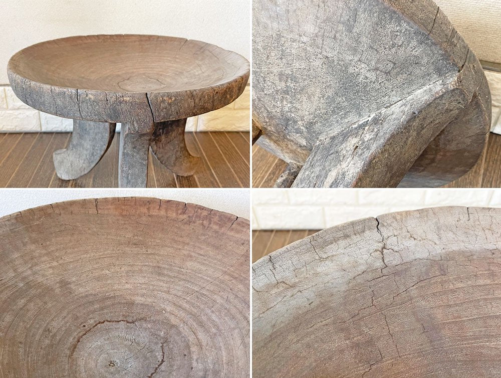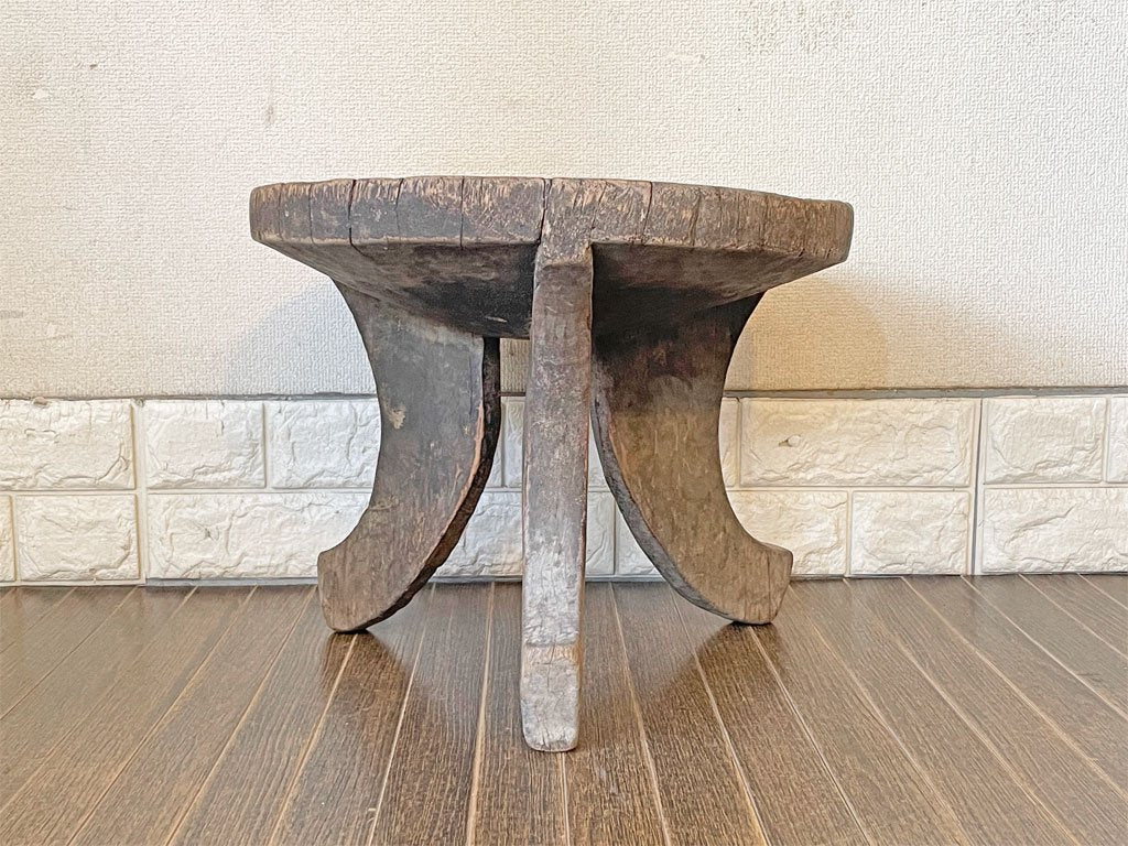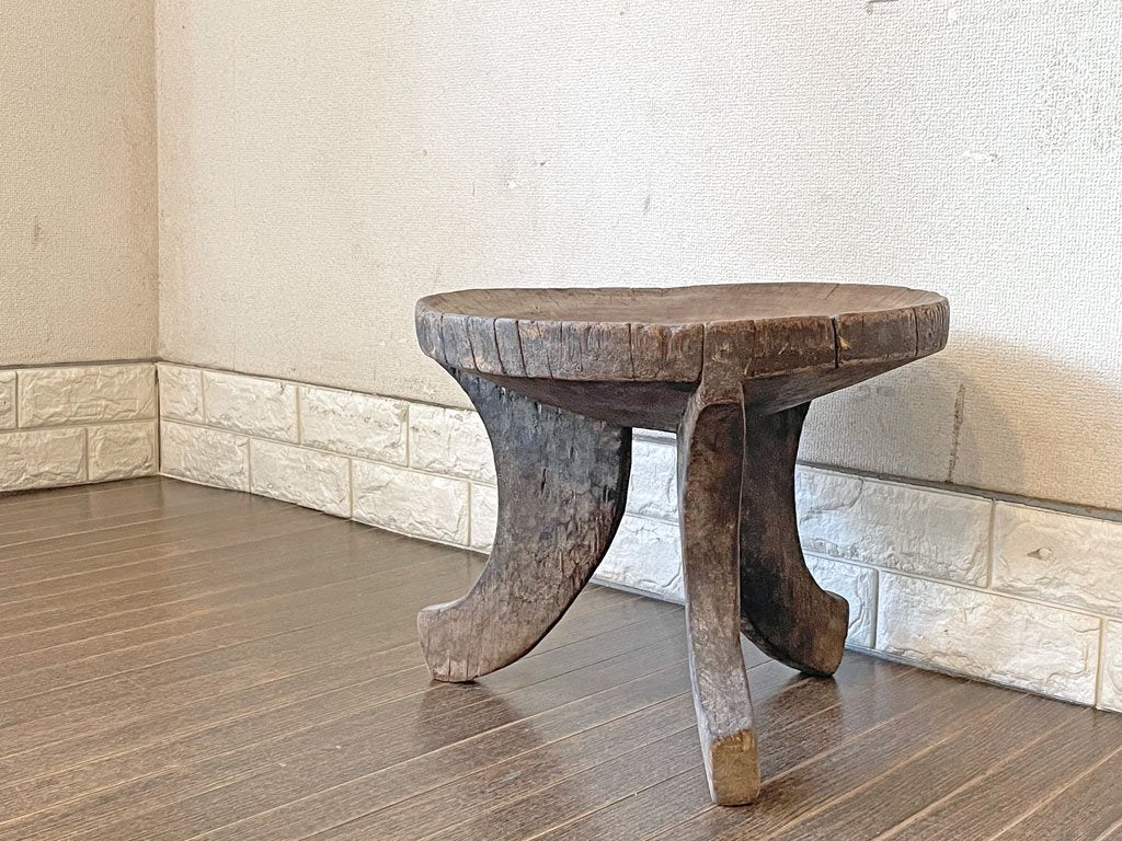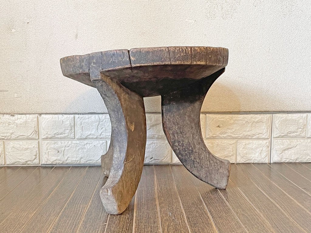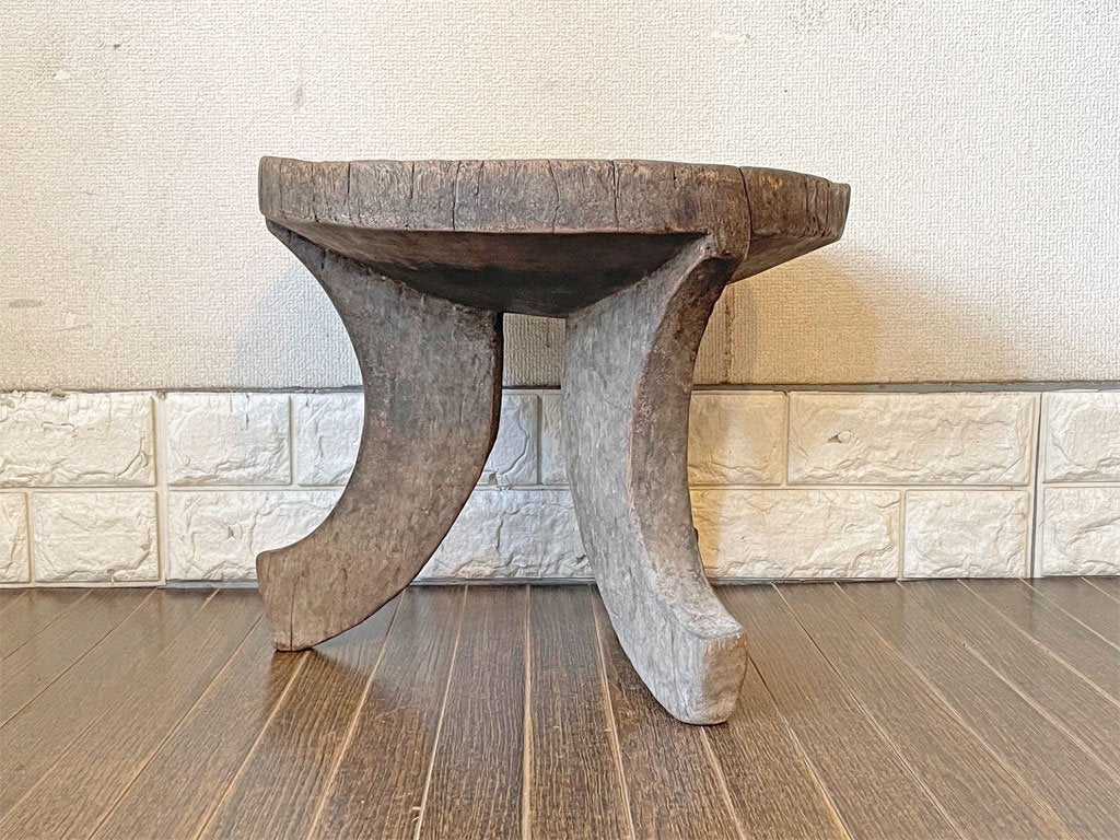 エチオピア ジンマ族 スツール 腰掛け 無垢材 一木 プリミティブ 民族 トライバル 民具 花台 アフリカ ビンテージ ◎