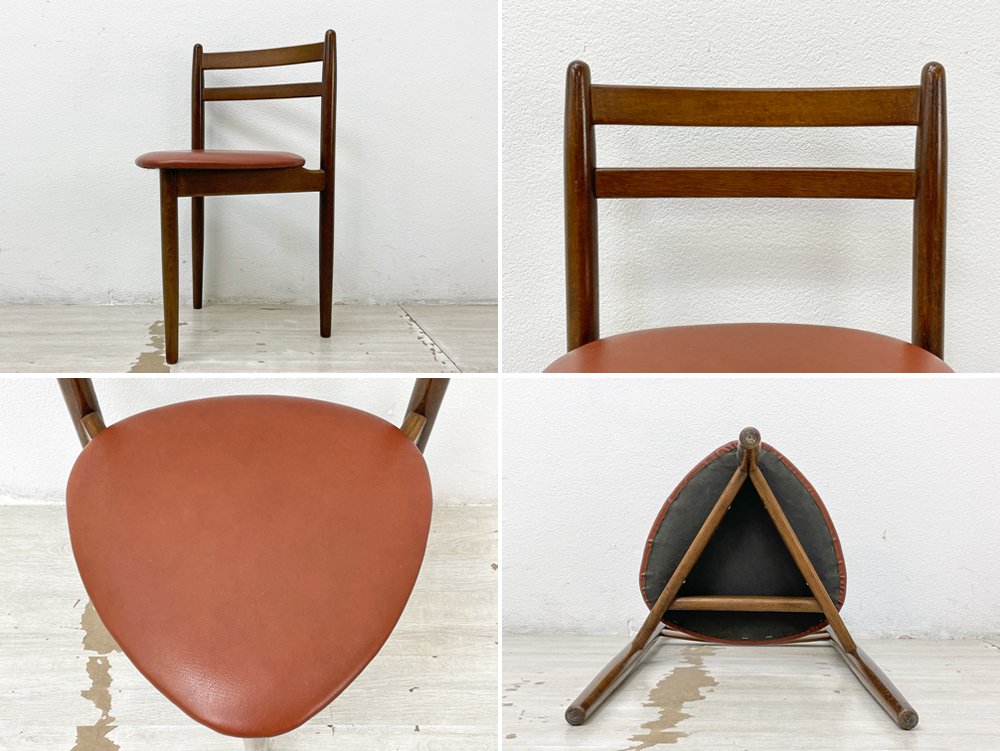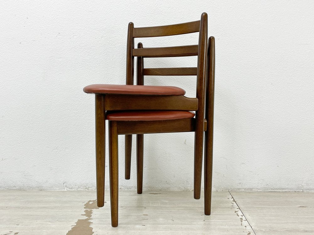 日進木工 NISSIN ダイニングチェア 2脚セット 三角形座面 オーク材 PVCレザー スタッキング 北欧スタイル A ●