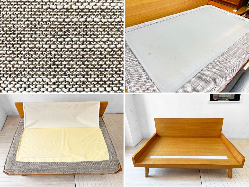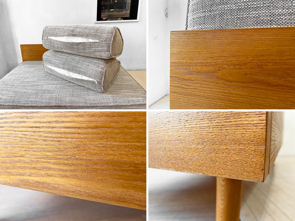 ファブリックに僅かなスレや毛羽立ち、フレームに軽微な傷やペイント痕、背板に製造時の塗装ムラ(液垂れ痕)がございます。また、座面クッション裏にシミ汚れが見受けられますが、クッションのヘタリなども無く、大きく目立つようなダメージなどもございません。USED品として概ね良好なコンディションを保っております。