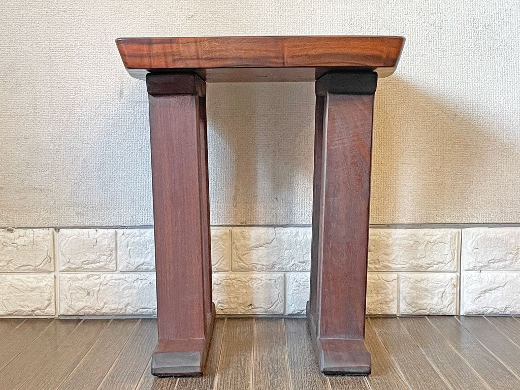 高さ45.5cmとコンパクトなサイズながらも、ずっしりとした天板と二本の脚が重厚な印象。
