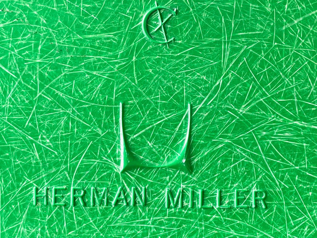 ビンテージでは非常に希少なカドミウムグリーン(ケリーグリーン)カラーの1点が入荷致しました。目を引く鮮やかな発色。大文字の社名とHのロゴエンボス仕様から1955~1970年の間に製造された希少なチェアであることが伺えます。