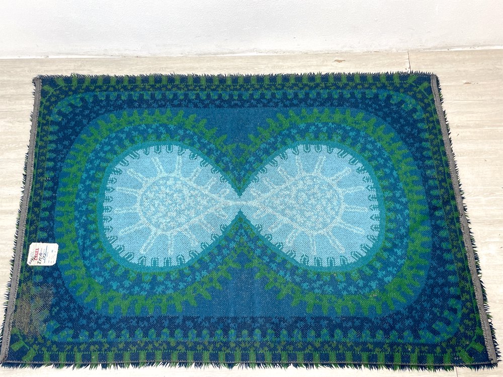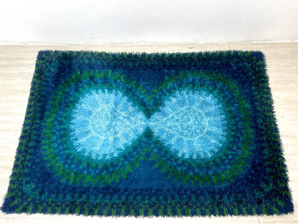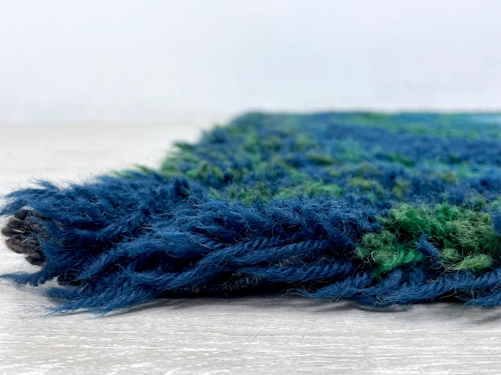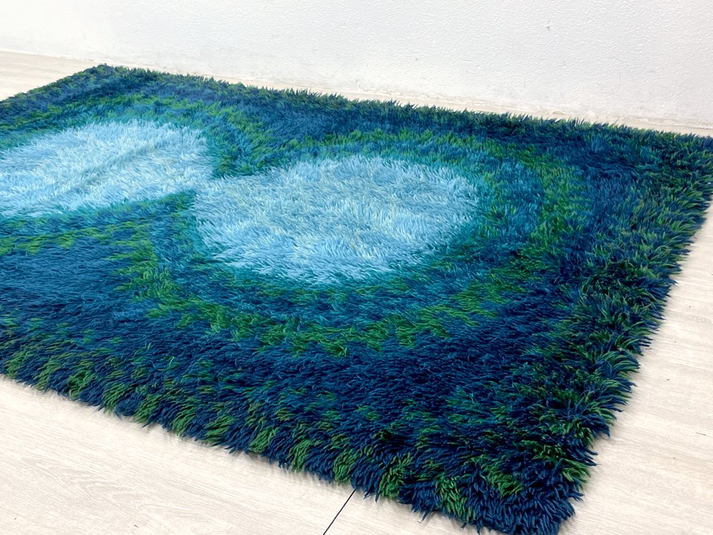 Engel Fabrikerna シャギーラグ カーペット 135×200cm ウール ブルー×グリーン スウェーデンビンテージ クリーニング済み ●
