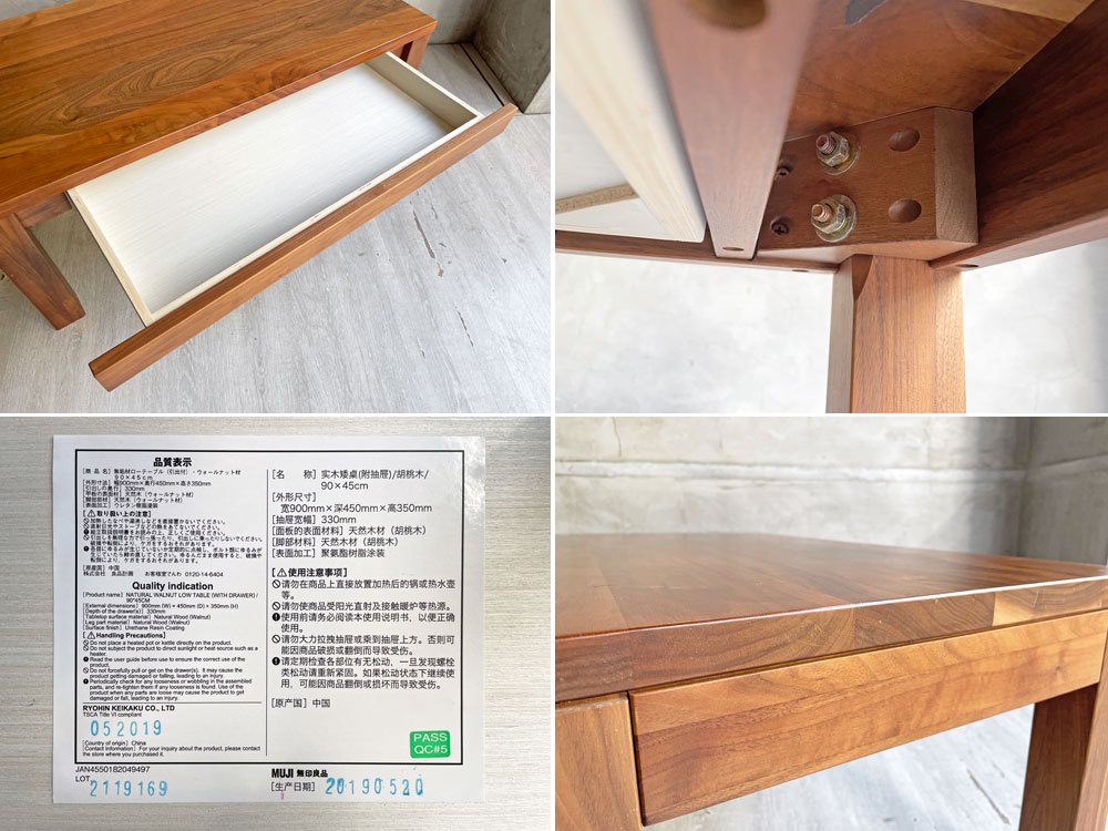 無印良品 MUJI ウォールナット センターテーブル ローテーブル 引き出し付き W90 ナチュラルスタイル 廃番 ♪