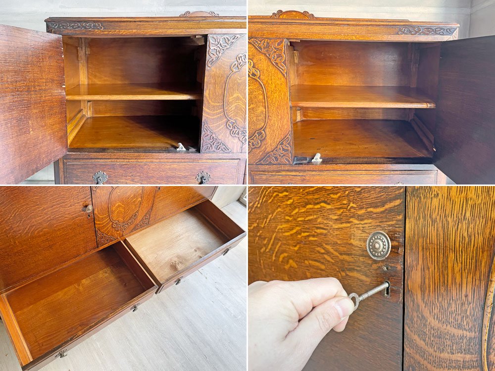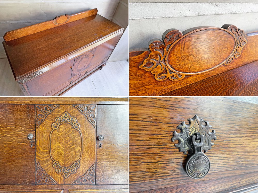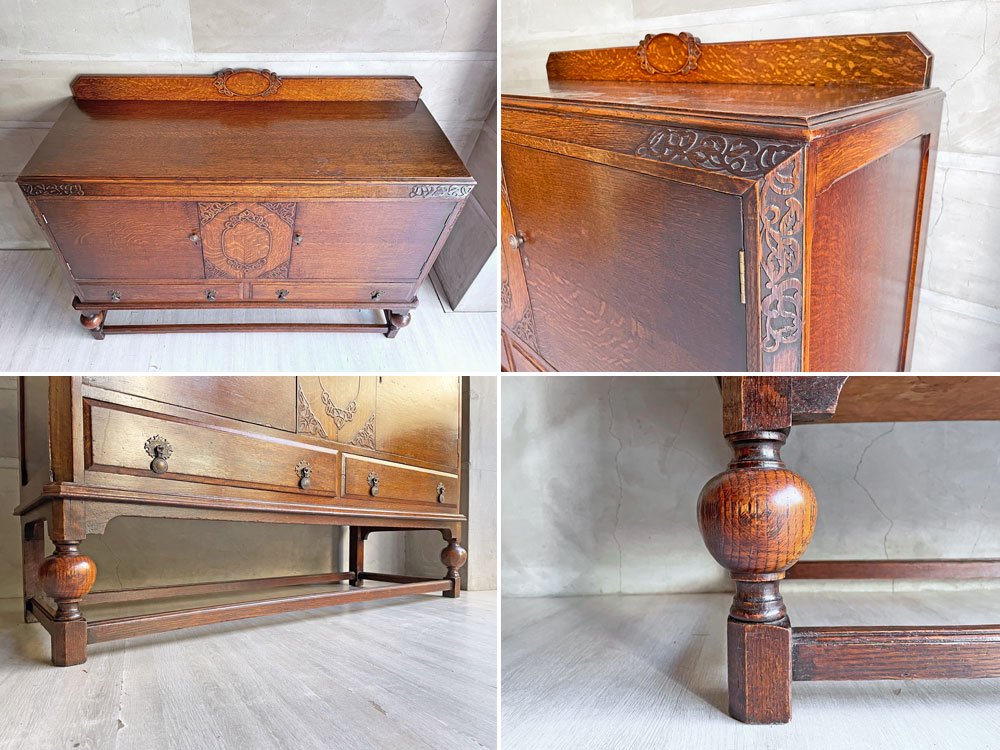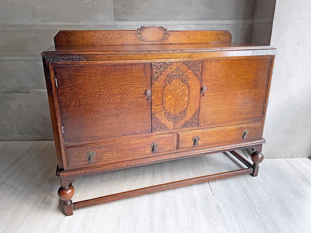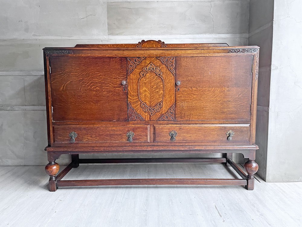 UKビンテージ Vintage オーク材 サイドボード キャビネット バルボスレッグ 推定1930年代製 W155 英国 ♪
