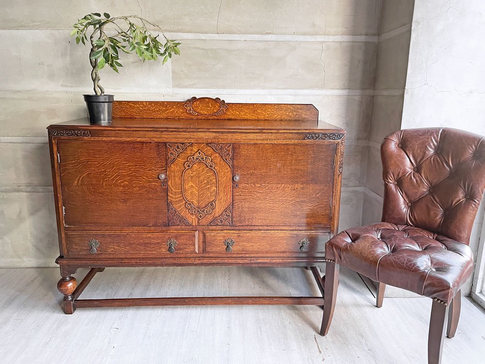 オーク無垢材をふんだんに使用した、重厚な存在感のUKビンテージ サイドボードです。