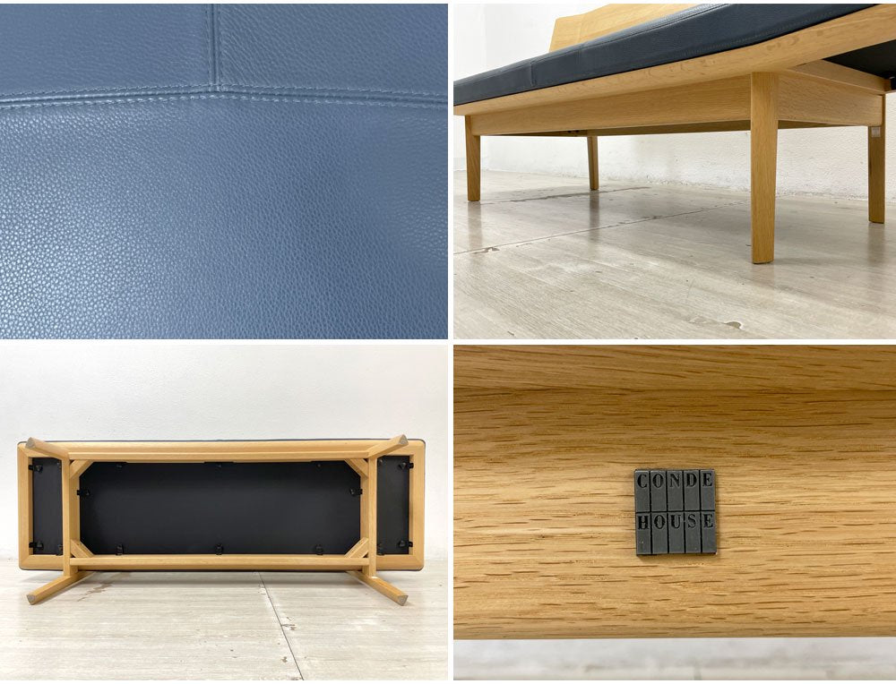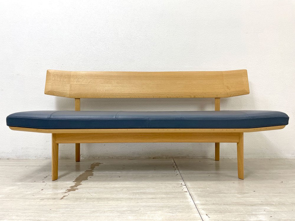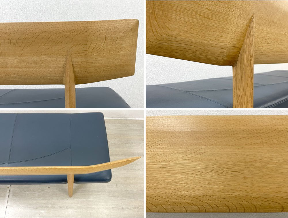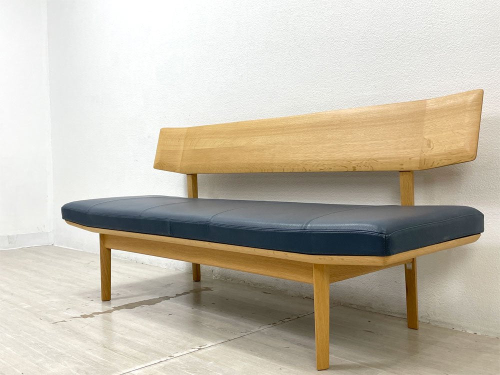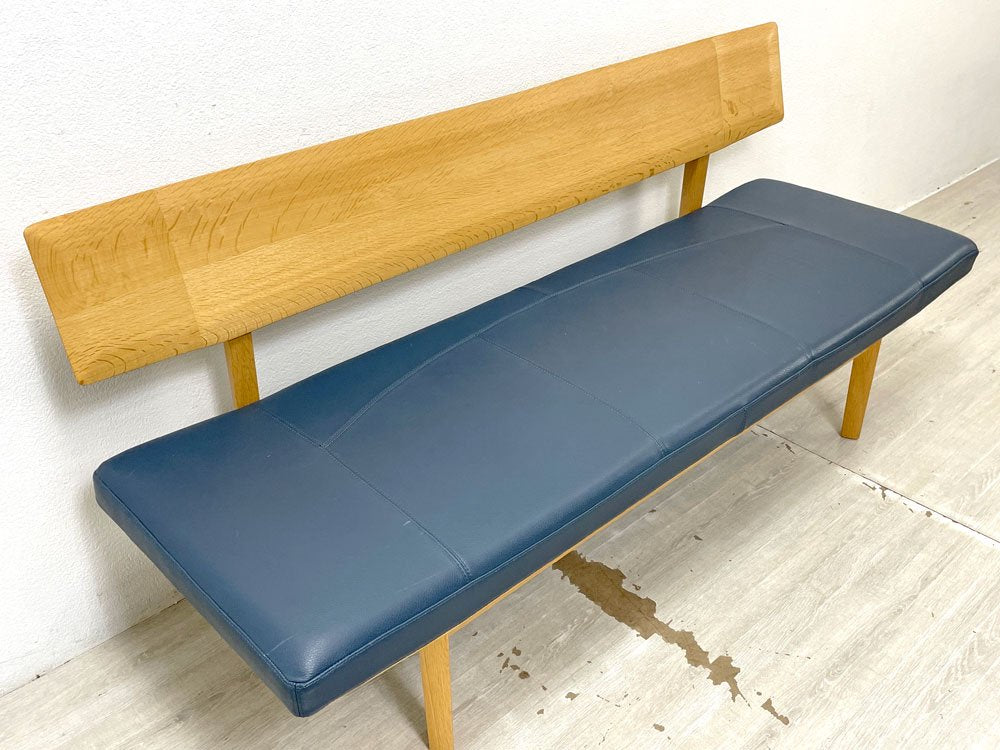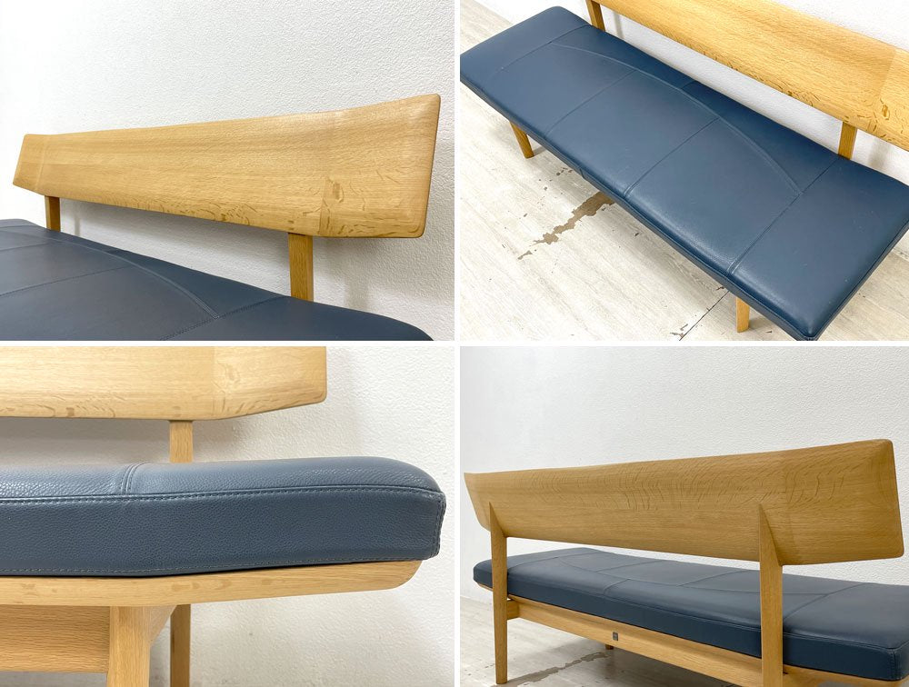 カンディハウス CONDE HOUSE ウイングラックス WING LUX LD ベンチ オーク無垢材 佐戸川 清 デザイン 本革 幅161cm ●