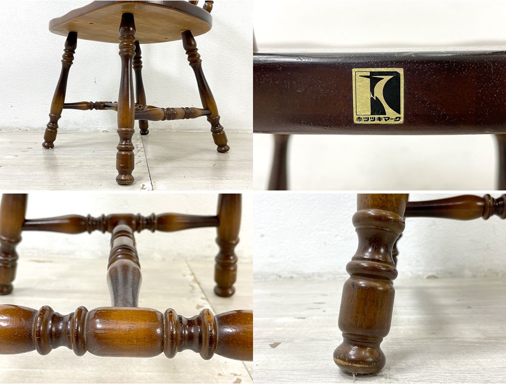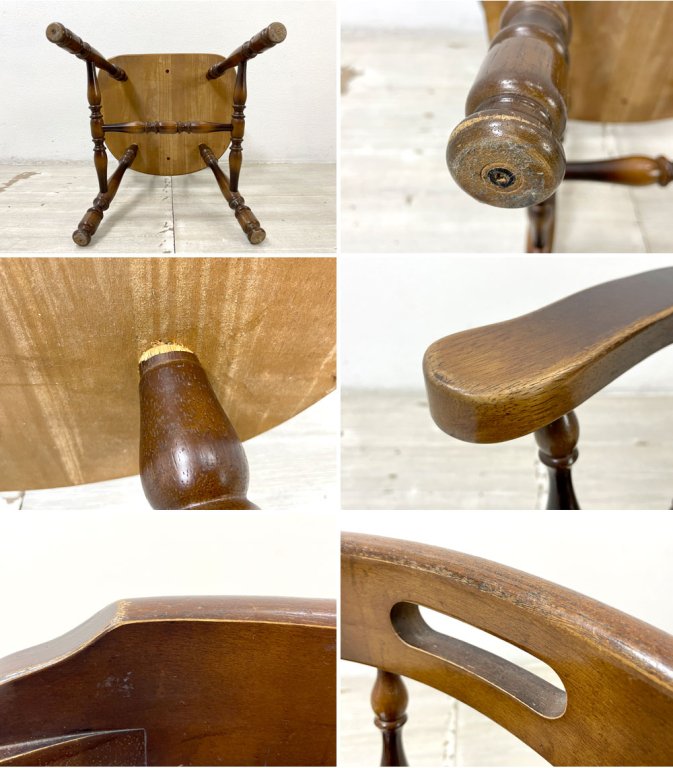 各所に挽物細工が施され、背もたれにはイギリス発祥のウィンザー様式が取り入れられた美しいデザイン。