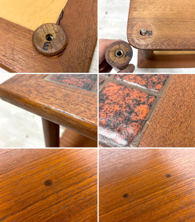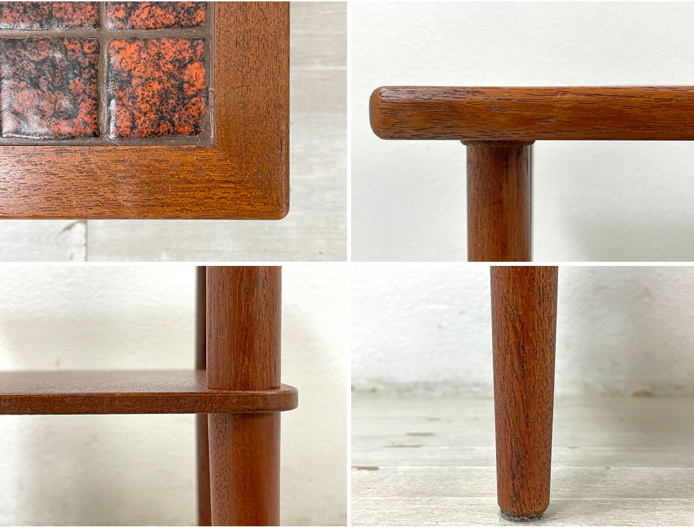 北欧ビンテージ Scandinavian vintage タイルトップ サイドテーブル ナイトテーブル チーク材 W39.5cm ●