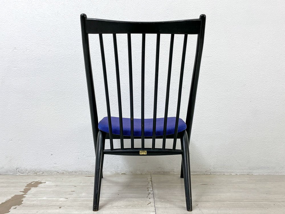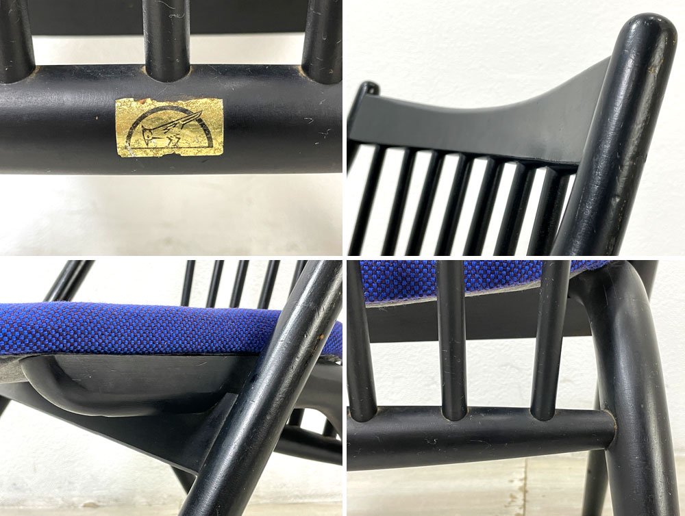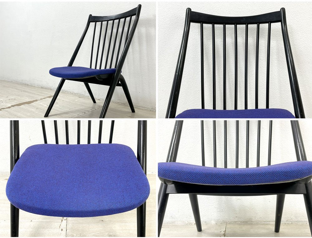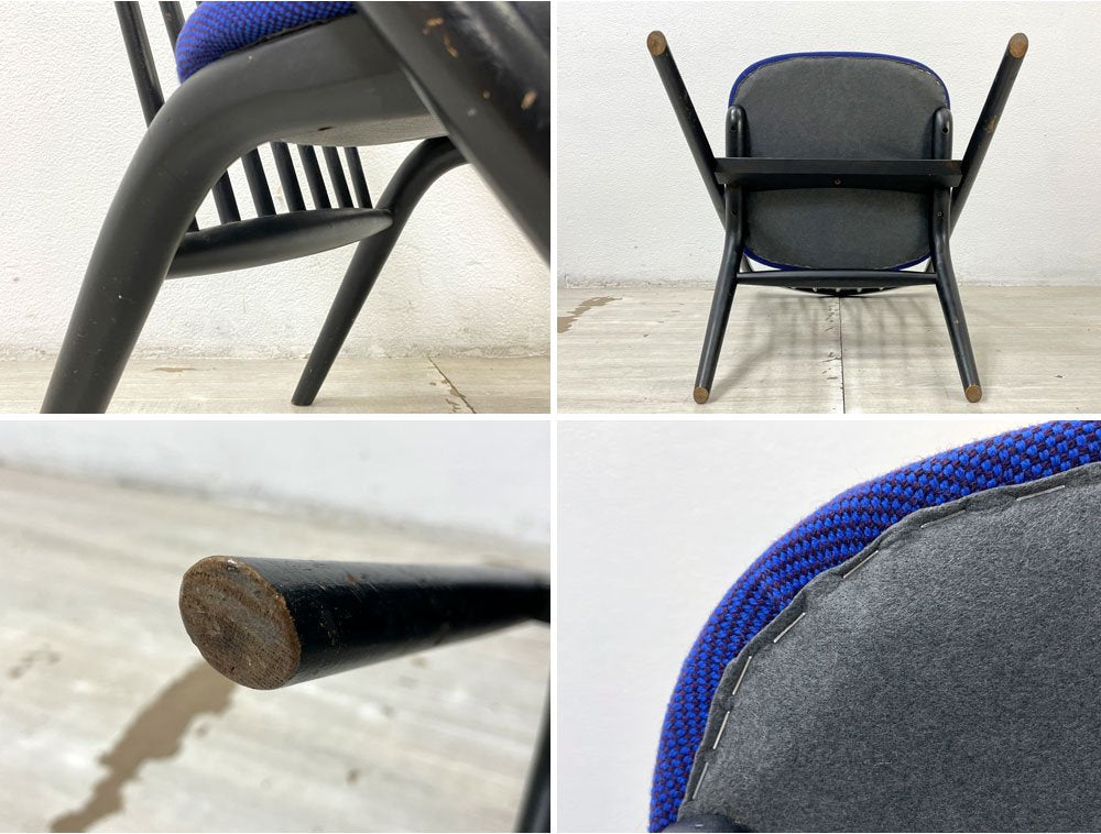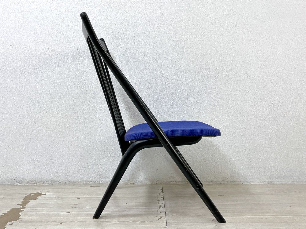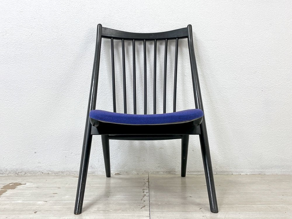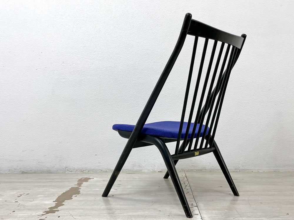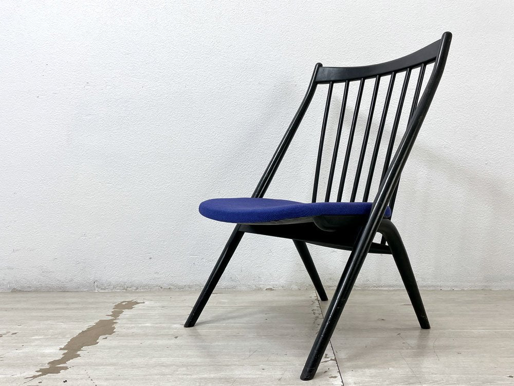 飛騨産業 HIDA オールドキツツキ カスケードチェア CASCADA サロンチェア ラウンジチェア ファブリック ブルー系 座面張替済み ビンテージ ●