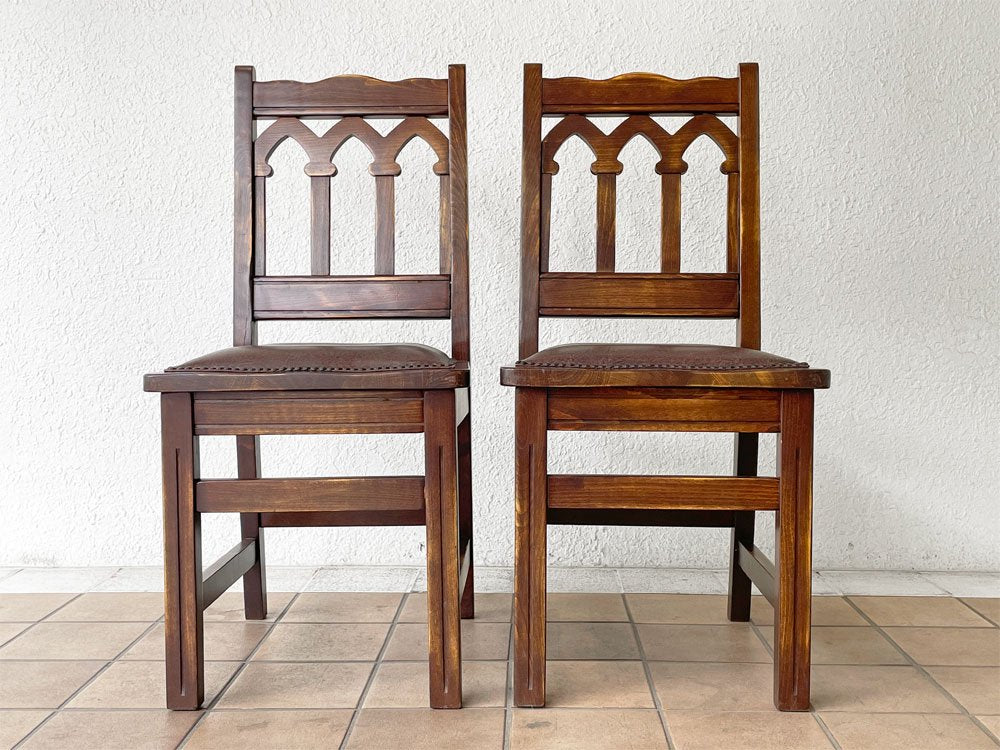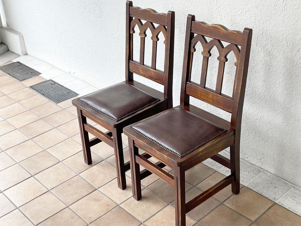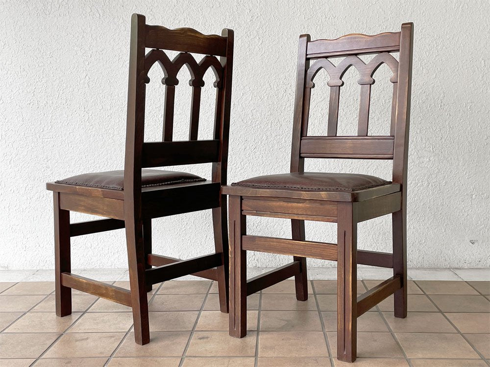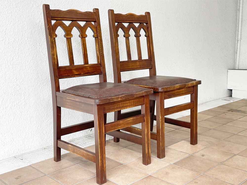イデア IDEA ダイニングチェア YA-5R 2脚セット ビーチ材 PVCレザー アンティークスタイル クラシカルデザイン 合計定価40,800円 ◇