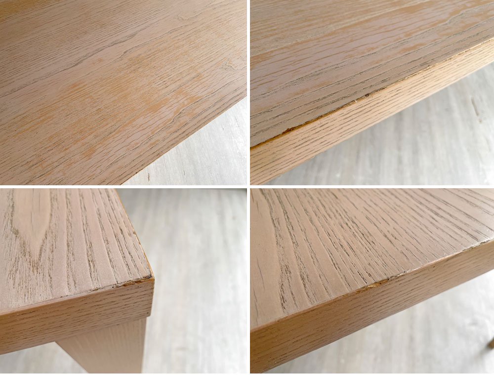 天板の広範囲に色褪せがございます。そのほか、細かな打痕や縁のペイントロス、細かな欠けなど、やや使用感の目立つコンディションとなります。