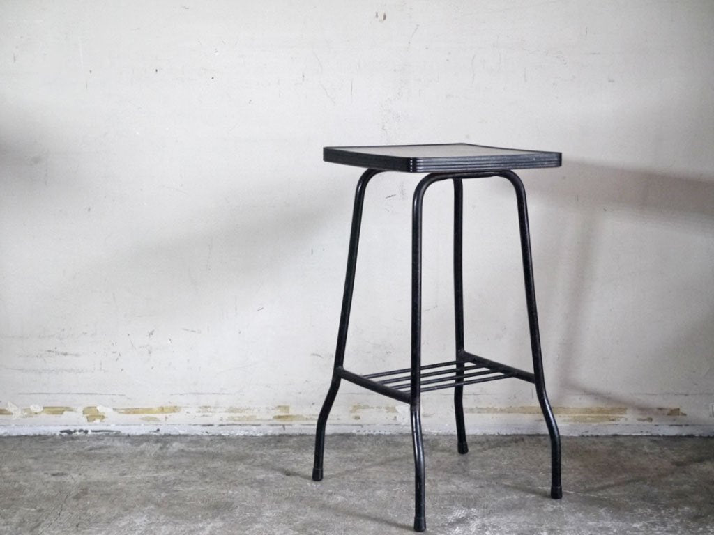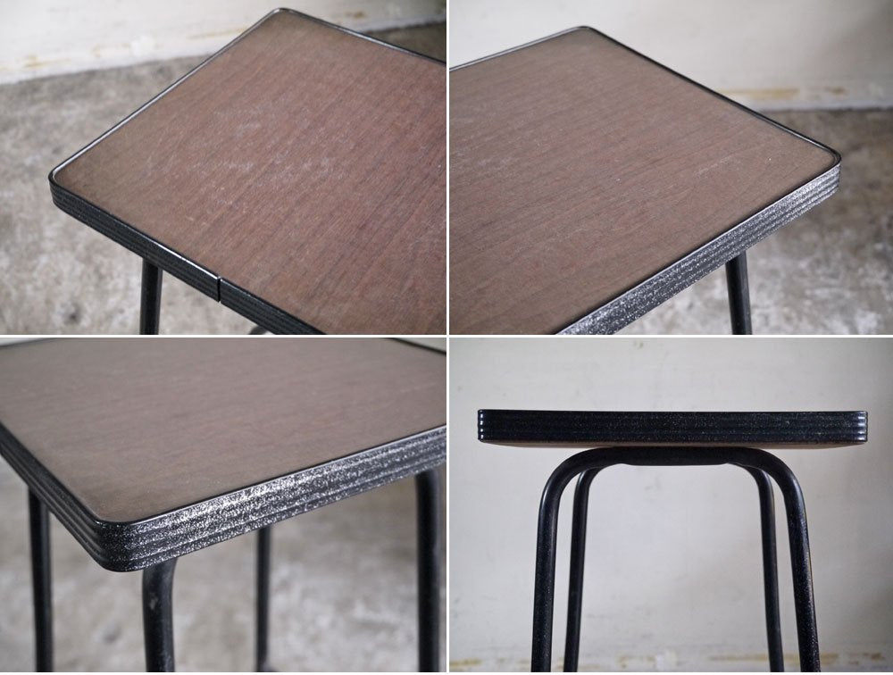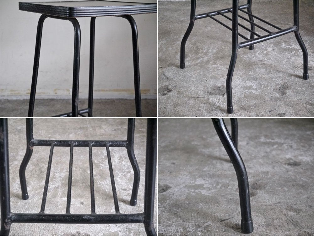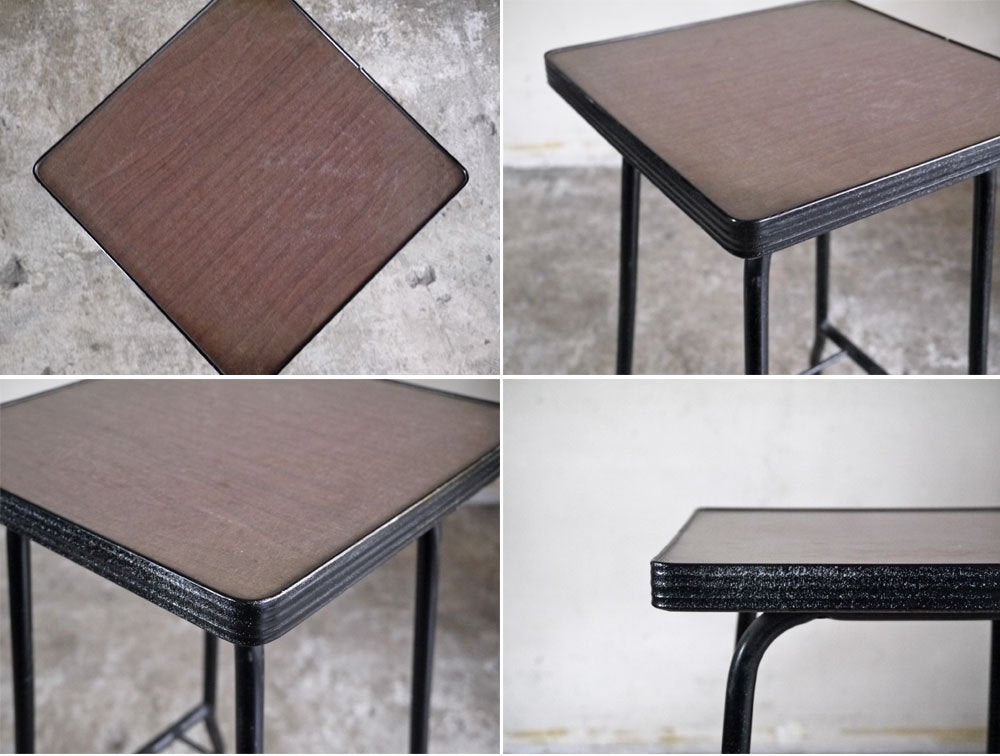 ジャパンビンテージ Japan Vintage サイドテーブル デコラトップ 花台 鉄脚 昭和レトロ ■