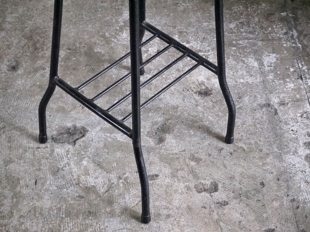 経年に伴い、天板や縁に擦れやくすみ、脚部に錆が見受けられます。