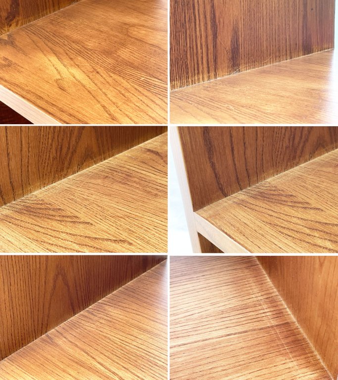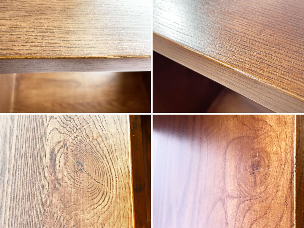 使用に伴いシェルフ天板や棚板には細かな擦れや傷、僅かなペイントロスが見られますが、いずれも大きく美観を損ねるものではございません。ガタツキや割れ等使用上問題となる点もなく、概ね良好なコンディションを保っております。