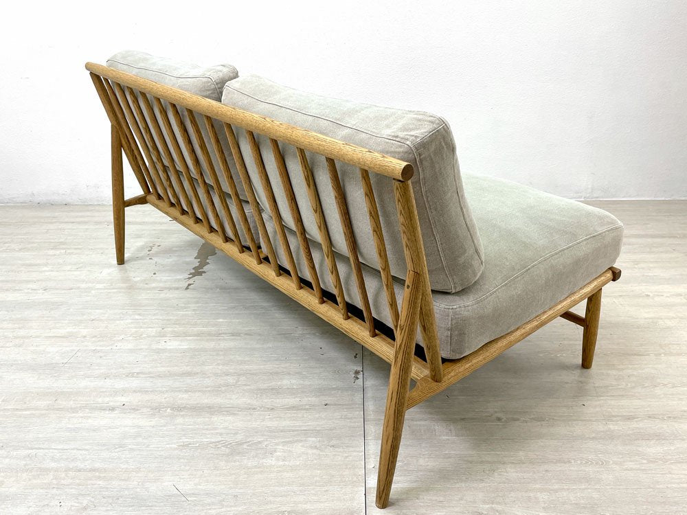 ウッドフレームには心地よい風合いを楽しめるオイル仕上げのオーク材を使用。北欧家具を彷彿とさせるスッキリとしたデザインはお部屋中央に設置した際には、美しいバックスタイルを演出してくれます。