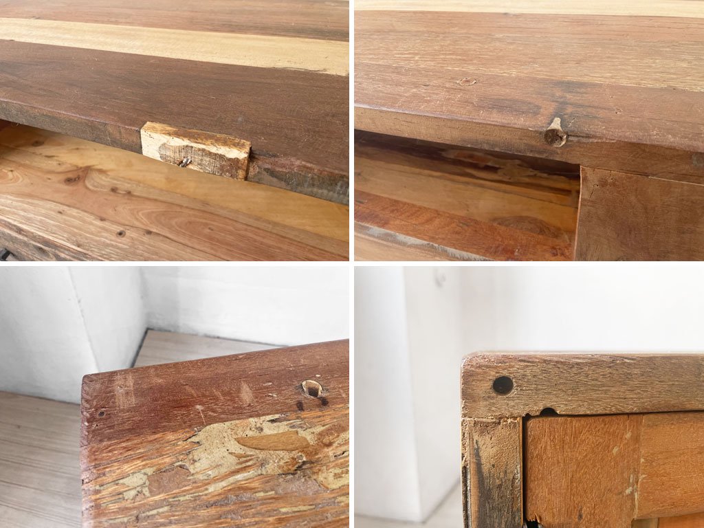 こちらは、古材を使用したお品物となります。古材特有の欠けや割れ、傷やスレ、凹凸などがございますが、製造時からの仕様となります。その他、大きく美観を損なうようなダメージや、ご使用に問題のある箇所なども無く、USED品として概ね良好なコンディションを保っております。