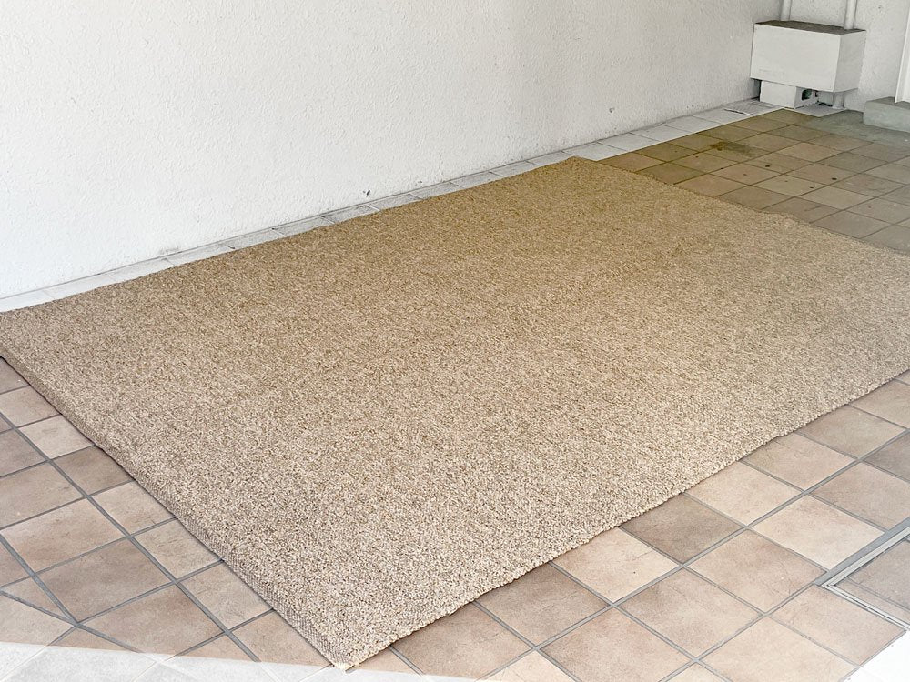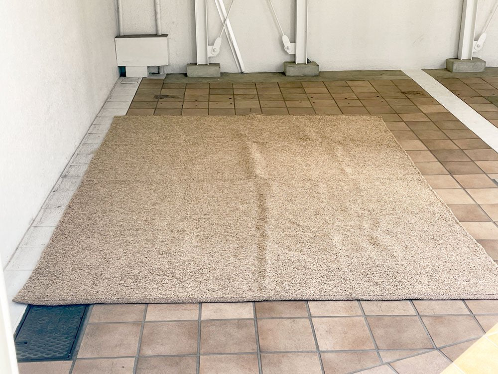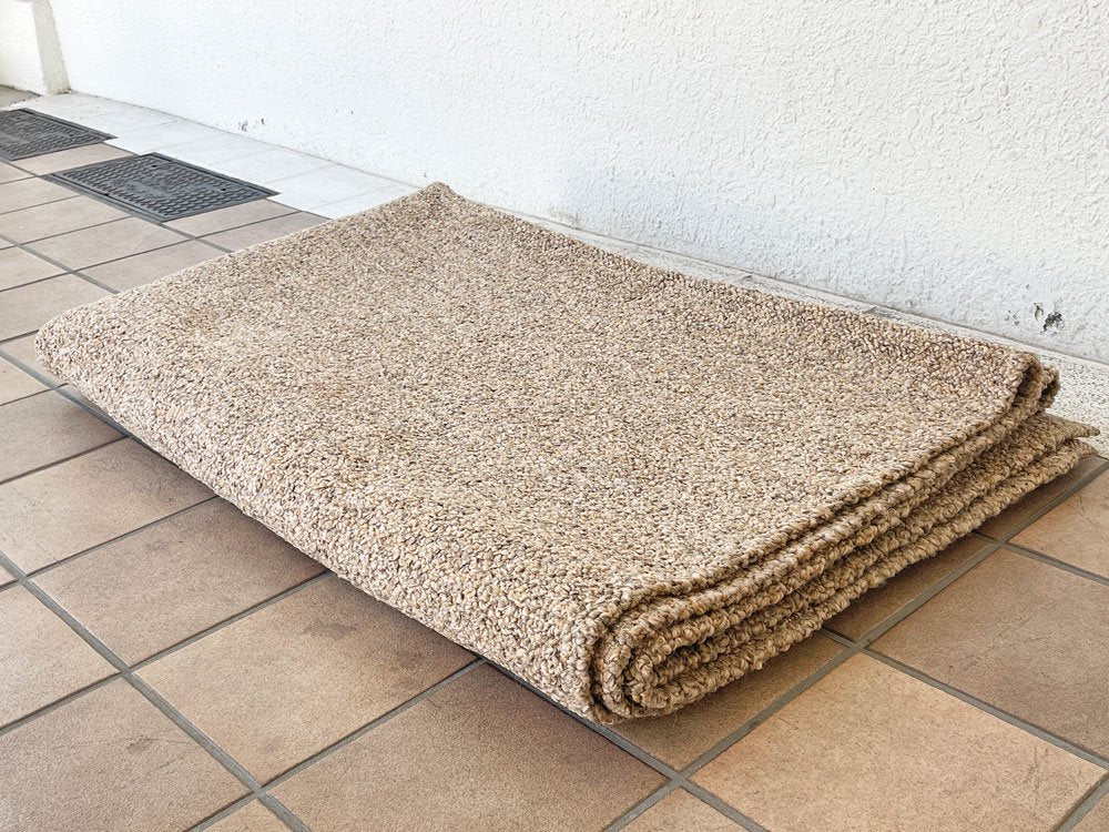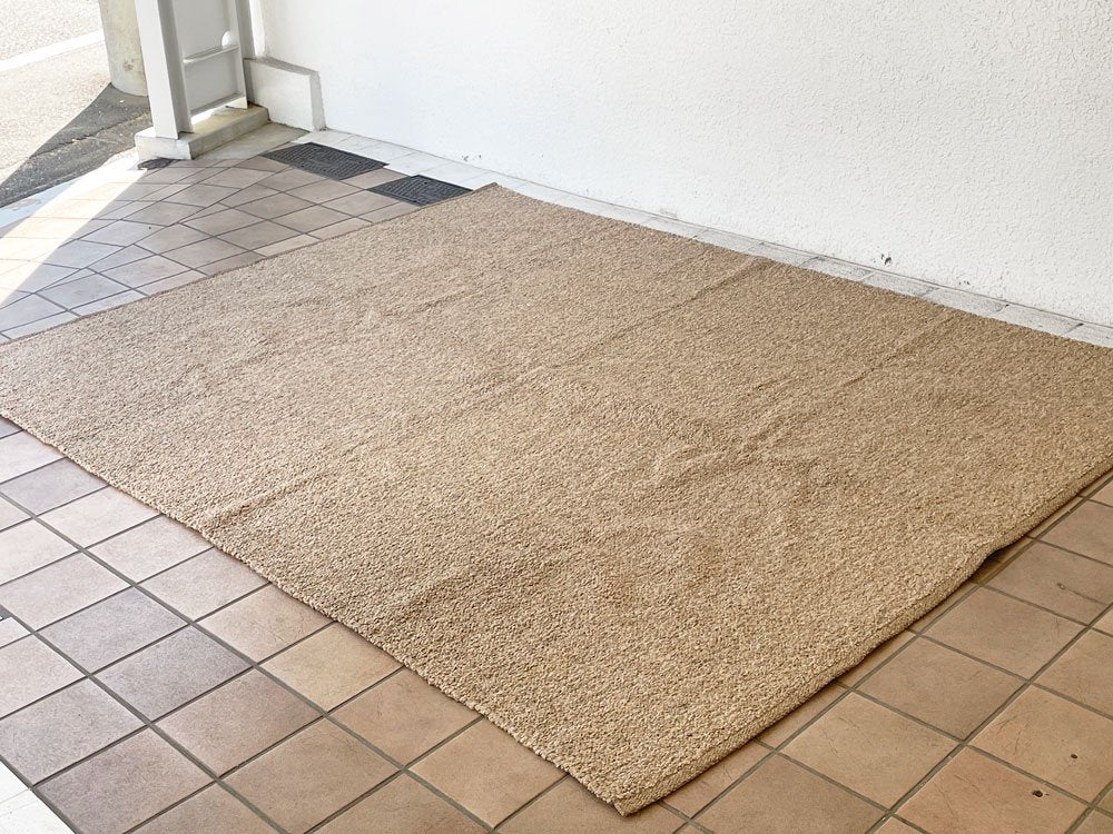弊社で出品されている絨毯・ラグは中古品またはビンテージ品となり、埃落としや掃除機等の簡易清掃のみ行っております。水洗いや洗剤を使用したクリーニング等は、ビンテージの状態保存、また弊社設備の関係上行っておりません。予めご了承下さい。中古のラグにご不安のある方、アレルギーをお持ちの方は、ご購入をお控え下さいませ。またご近所のクリーニング店等にご自身でご依頼される場合は、大型絨毯やビンテージ品のクリーニングを行っているかご購入前にご確認下さい。ご購入後のご返品・ご返金は致しかねます。
