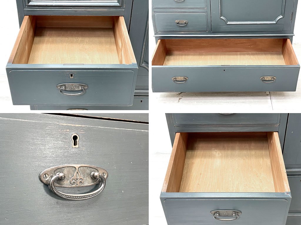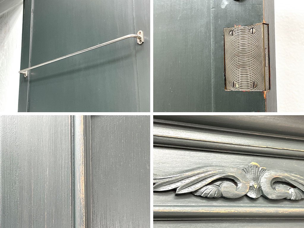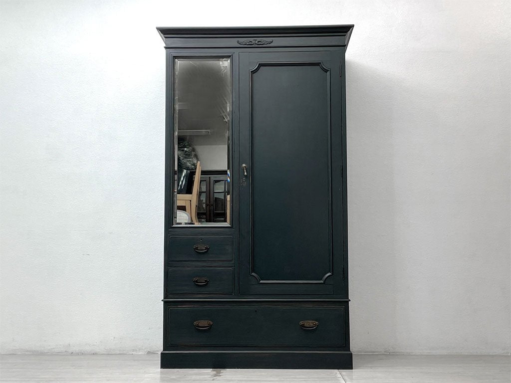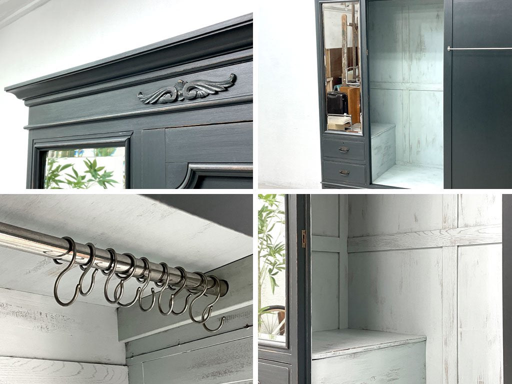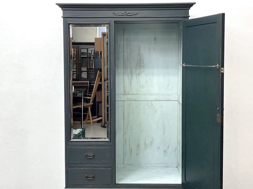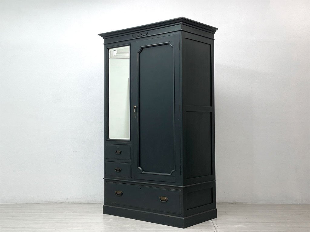 ビンテージスタイル Vintage style 木製ワードローブ クローゼット 収納家具 姿見 抽斗付 リペイント 鍵欠品 ●
