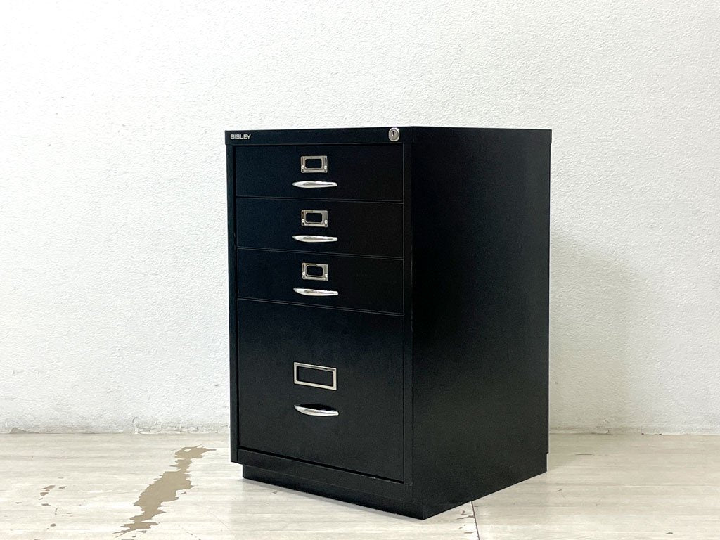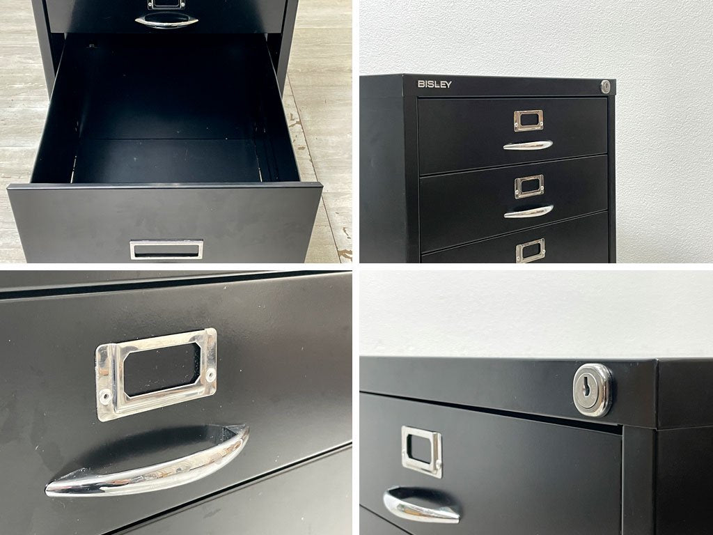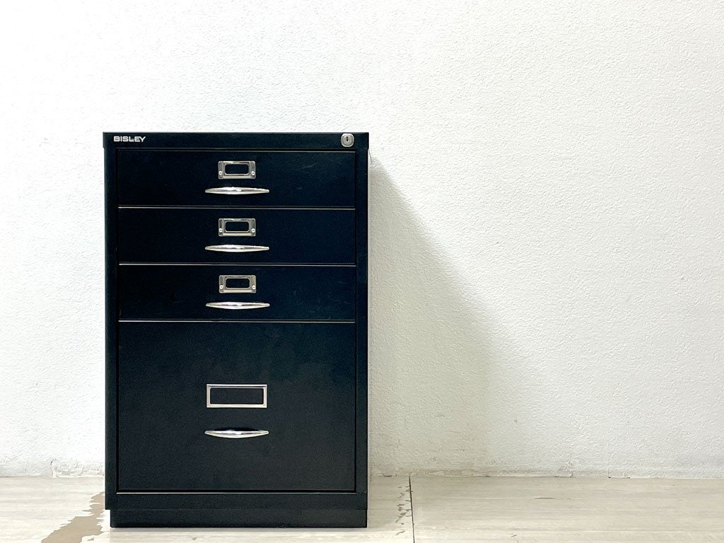 ビスレー BISLEY ベーシック BASIC Fシリーズ 1F3 ファイリングキャビネット 4段 ブラック オフィス家具 イギリス 英国 鍵欠品 ●