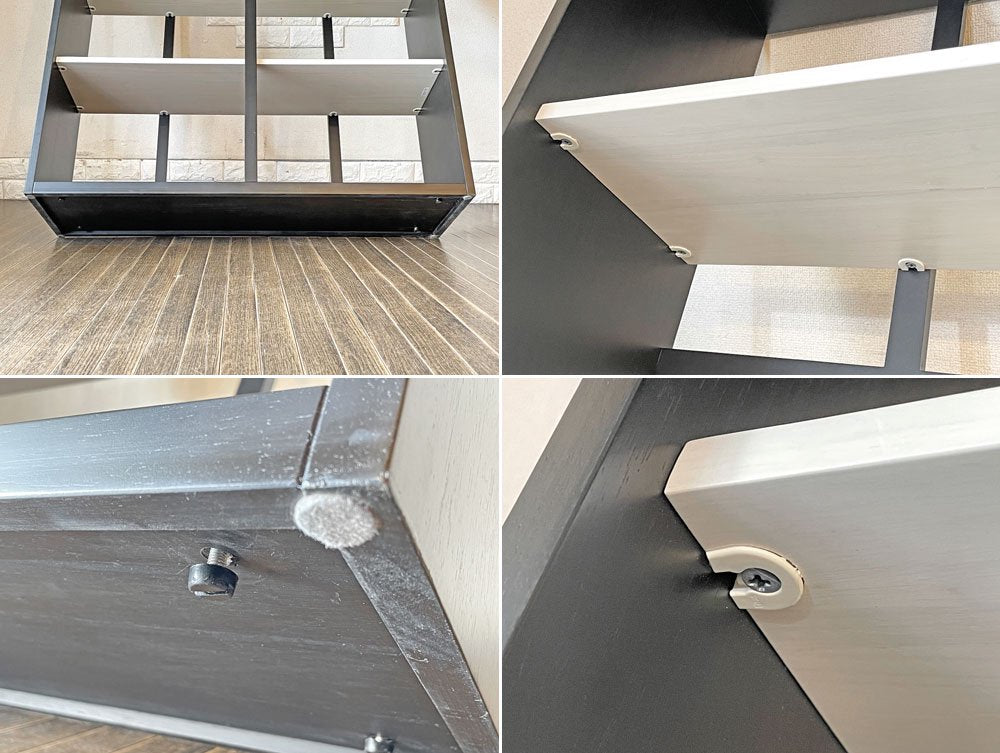 ブラックのフレームとホワイトの棚板が作り出すモノトーンのコントラストが、メリハリのある空間を演出してくれます。