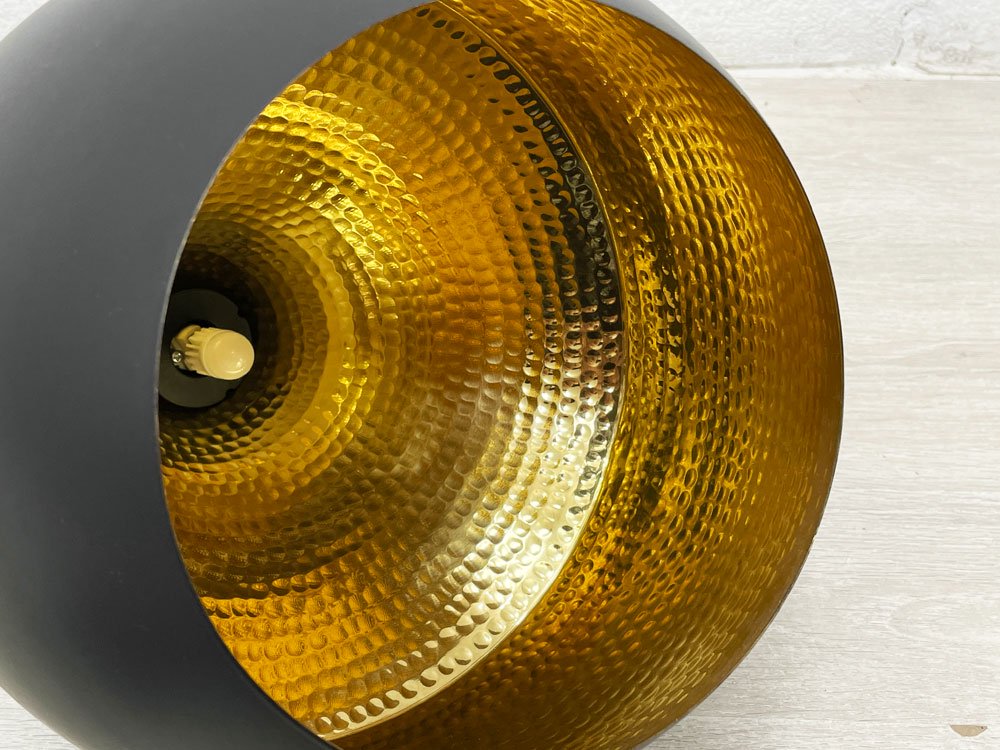 今回の入荷は水滴のように中程が膨らんだ「ファット」タイプ。シェード表面は内部真鍮の輝きとは対照的にマットなブラックでに仕上げられ、質感とカラーのコントラストをお楽しみ頂けます。
