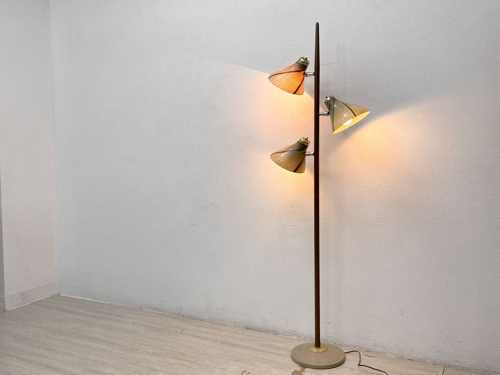 USビンテージ Vintage 3灯 フロアライト フロアスタンド FRPシェード ミッドセンチュリーデザイン ●