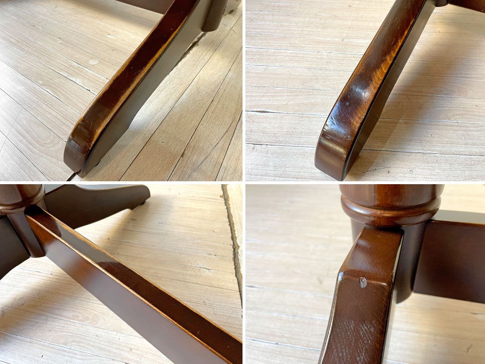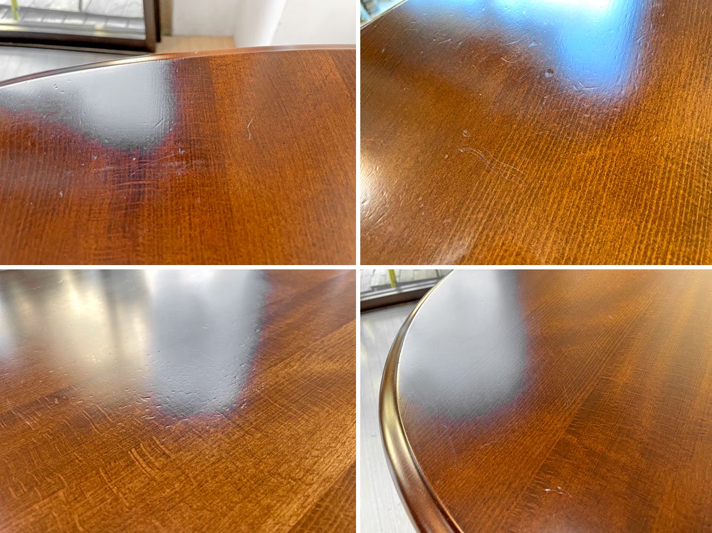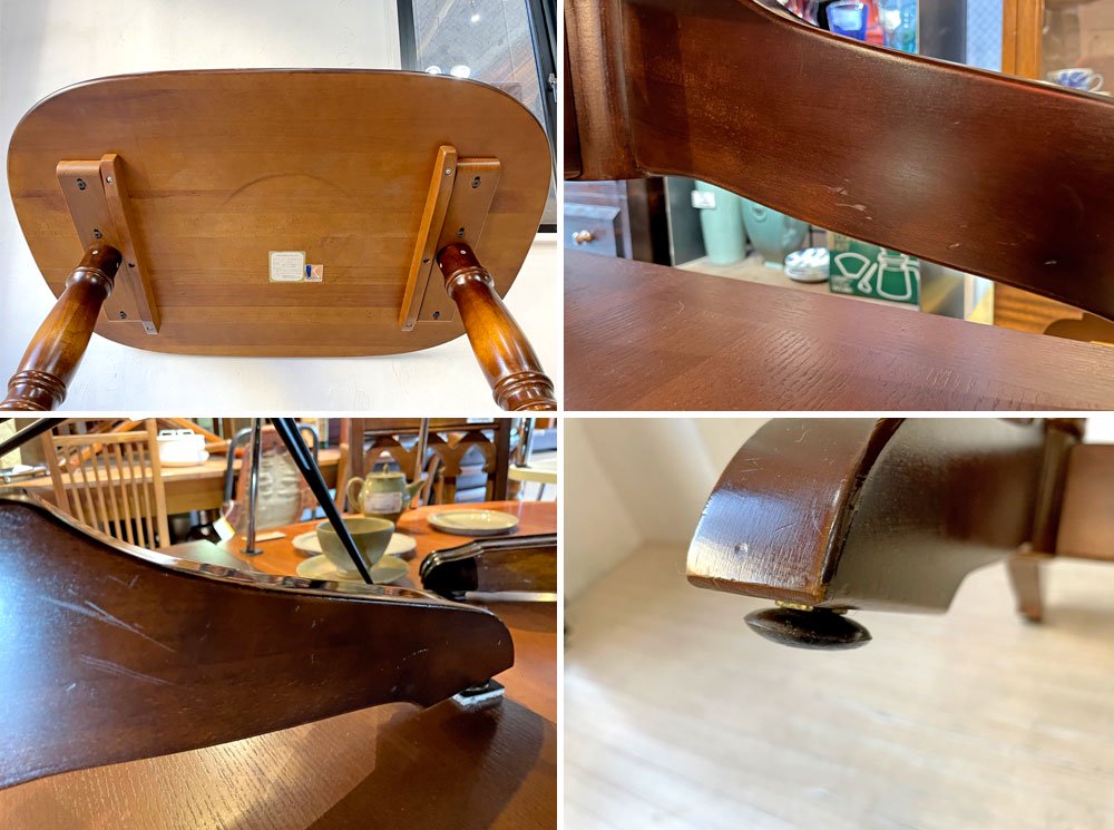 使用に伴う傷や擦れ、ペイントロスや光の加減で見える細かな打痕などが複数見受けられます。また、天板裏のシミや脚部の汚れなどが見受けられます。多少の使用感はございますが、大きく美観を損ねるようなダメージなどもございません。これからも安心してお使い頂けるコンディションを保っております。