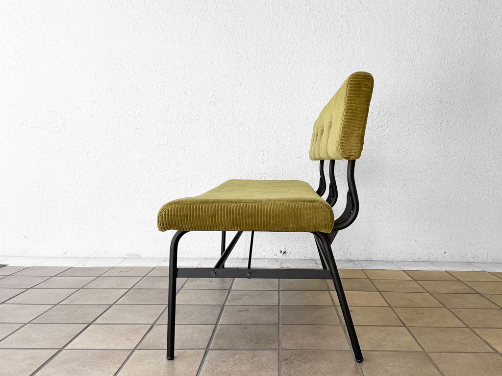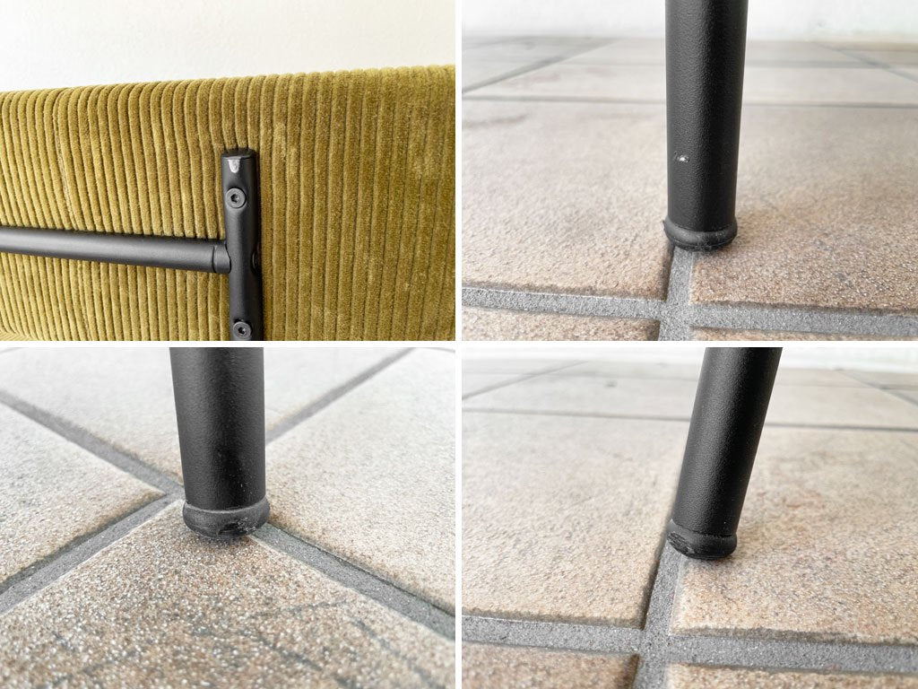 シャープに空間を引き締めるブラック色のアイアンフレームに、凹凸のある心地よい手触りのコーデュロイ生地を使用したクッションシートを組み合わせたトレンドの工業系デザイン。