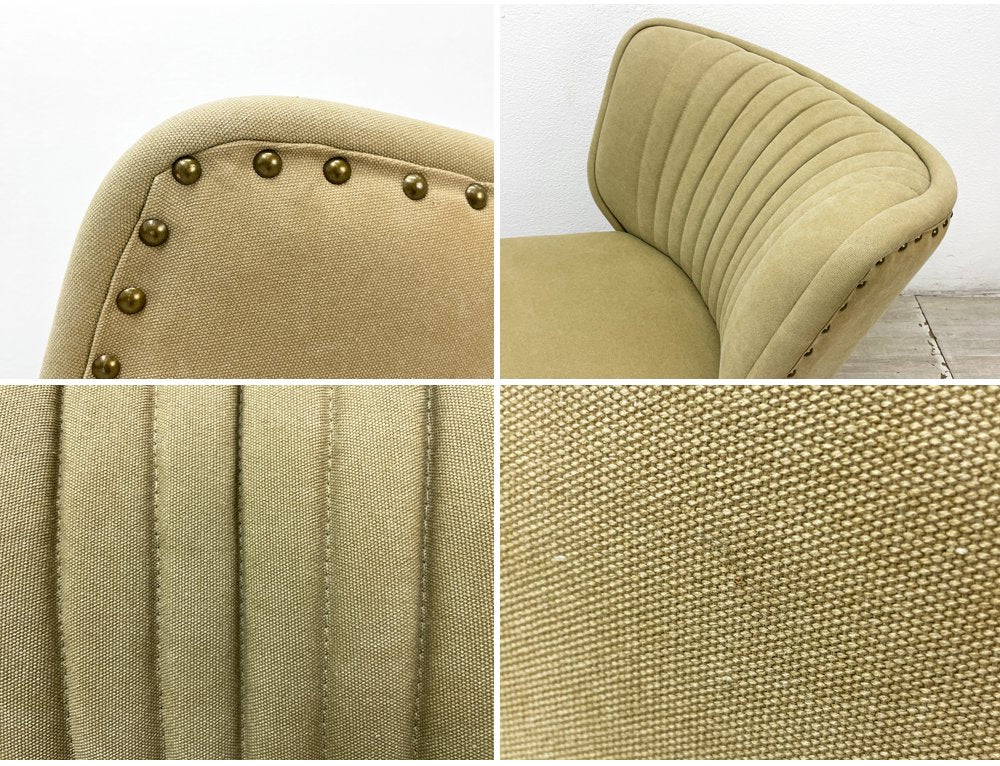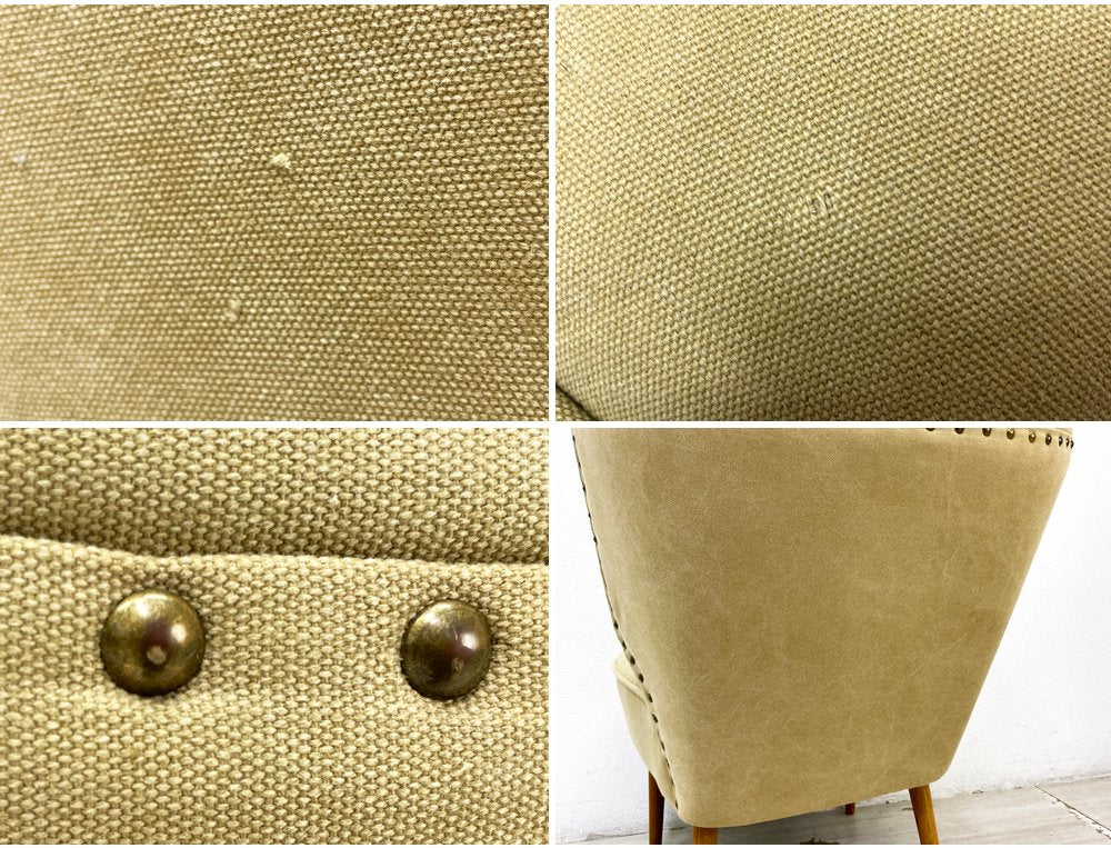 使用に伴い、ファブリックには擦れや毛羽立ち、脚部には打痕や傷等がございます。その他金属パーツ部に僅かな擦れが見受けられますが、使用上問題となる大きなダメージは無くこれからも実用頂けるコンディションを保っております。
