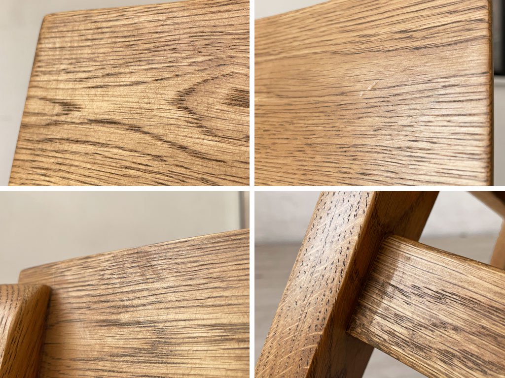 木部フレームに微細な擦れや打痕が見られますが、大きく目立つダメージやクッションのヘタリなどはございません。その他、使用に問題となるダメージも無く、中古品としては概ね良好なコンディションを保っております。