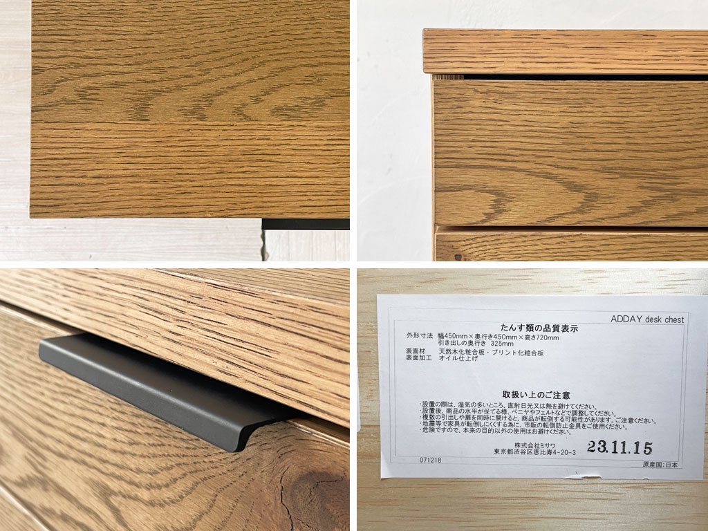 ウニコ unico アディ ADDAY デスクチェスト 3段 オーク材 オイル仕上げ W45cm 定価¥46,200- ★