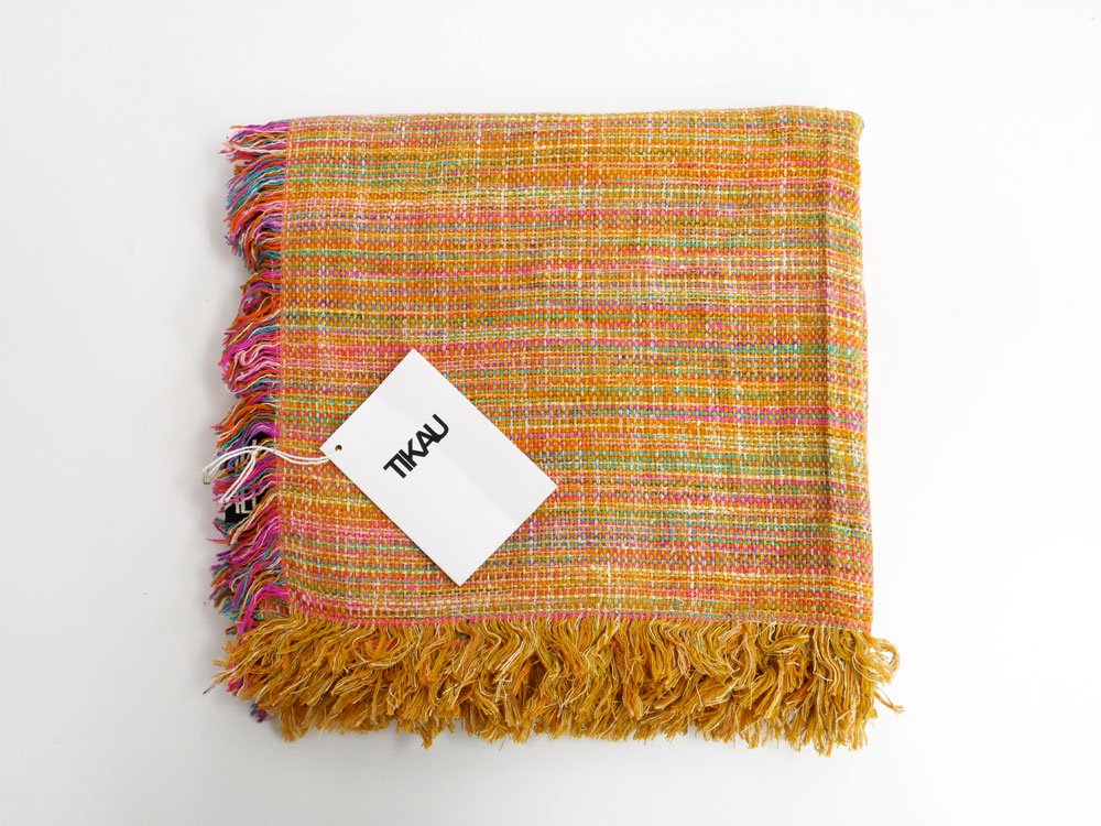 ティカウ TIKAU ワイドストール ブランケット コットン 100×100cm オレンジ系 フィンランド インド製 未使用品 ●