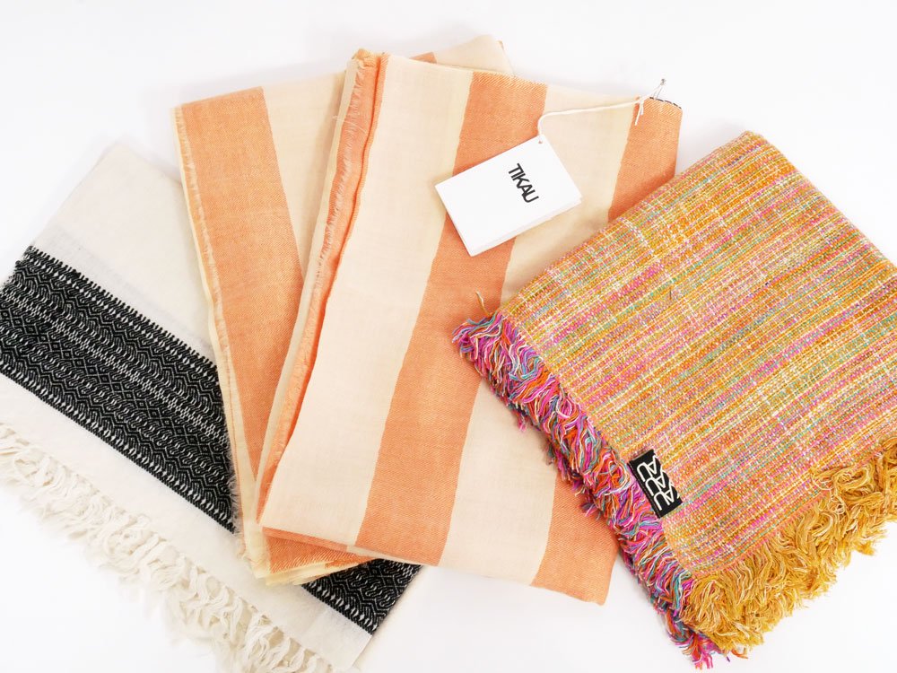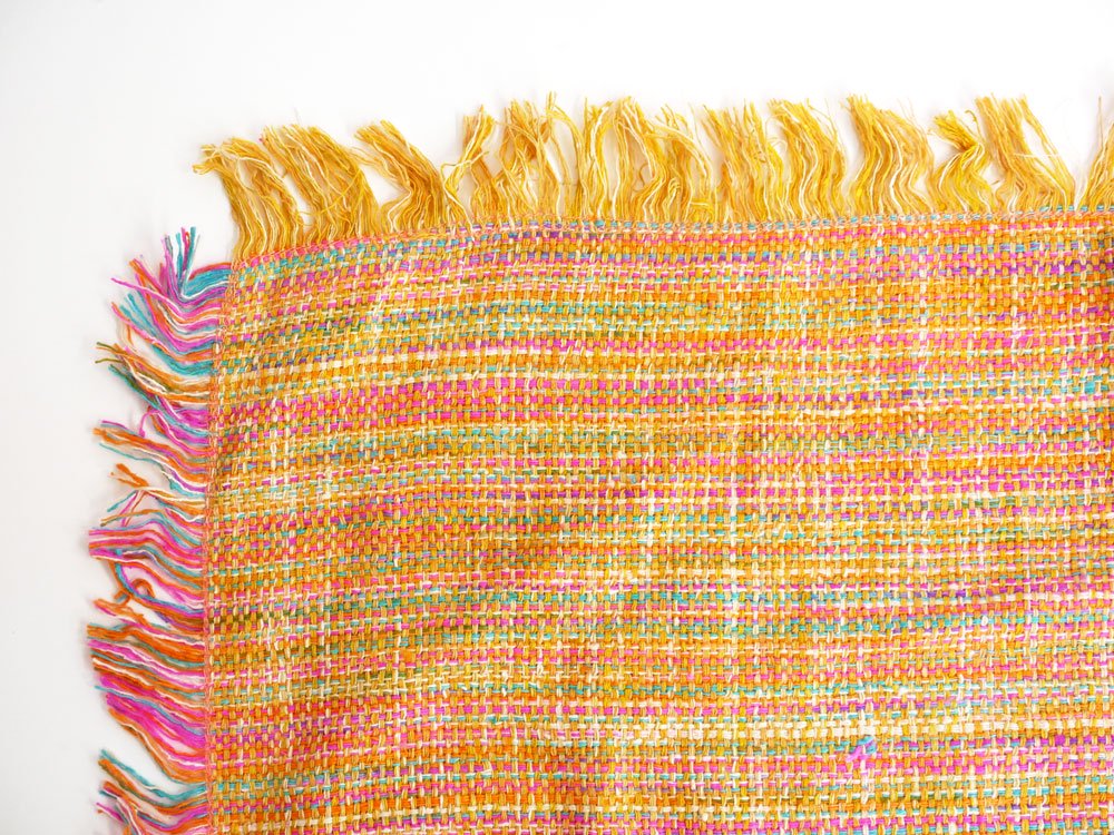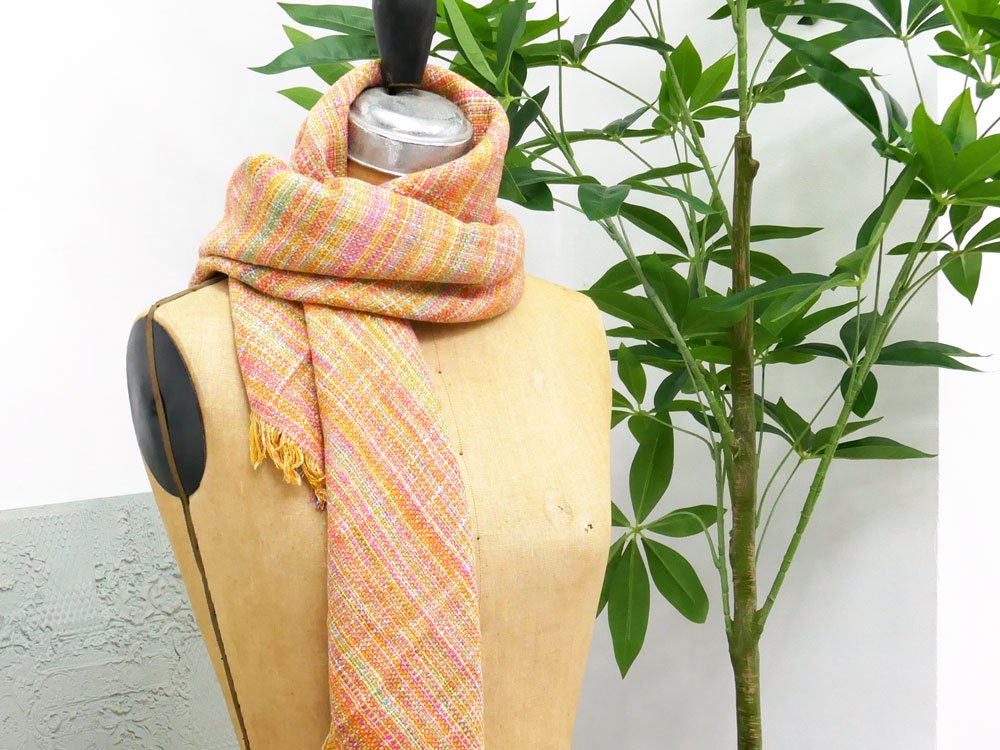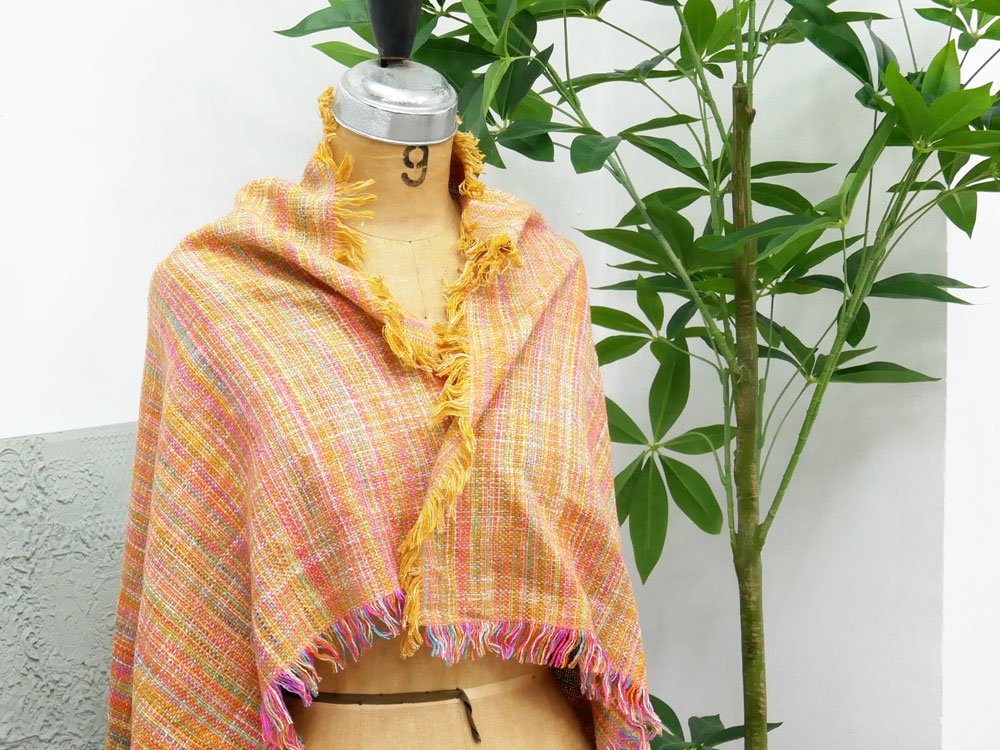 細い糸で丁寧に織り上げられたカラフルな色合いが美しく、ストールまたはブランケットとして様々なシーンで活躍してくれます。