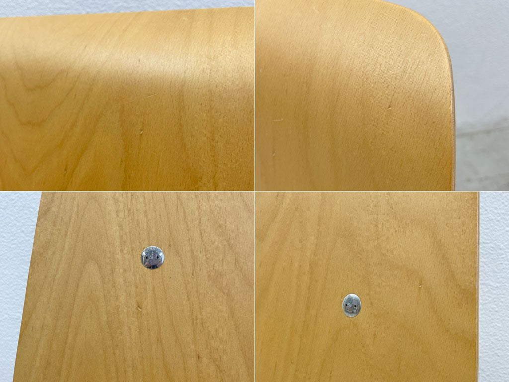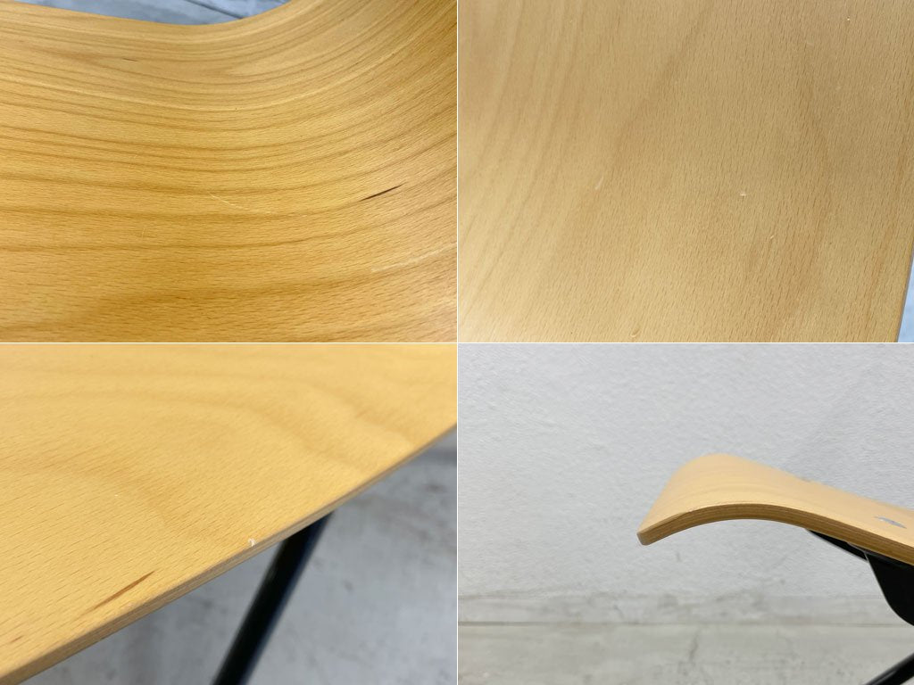 ビーチ材のプライウッドの清廉さと光沢のあるブラックスチールレッグによる洗練されたデザイン。