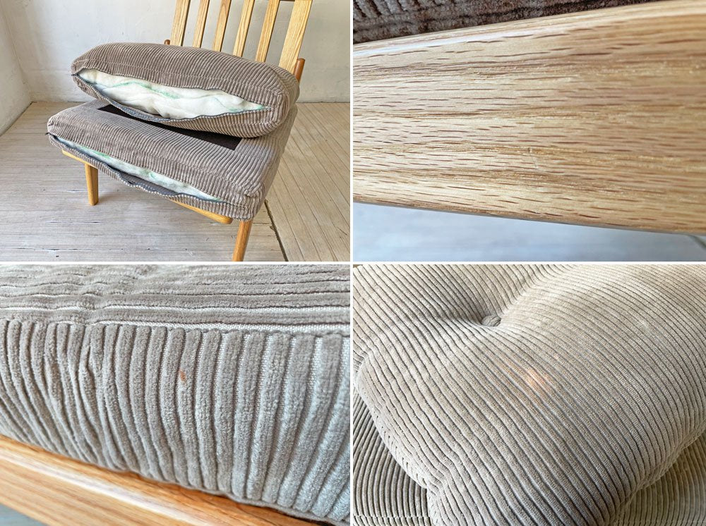 フレームに若干の傷や擦れ、ファブリックにスレや変色、ペイント痕やシミなどがございます。多少の使用感はございますが、クッションのヘタリなども無く、ご使用に問題のある箇所などもございません。これからも安心してご使用頂けるコンディションを保っております。
