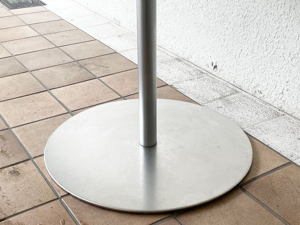 ベースは重厚感・高級感ステンレス製。しっかりとした重さがあり、1本脚ながらに安定性に優れます。