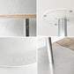 天板は積層合板にラミネートを施し、耐久性を持たせたもの。縁からは合板の断面が覗き、シンプルなデザインにアクセントを加えています。ホワイトの天板は室内の照明や自然光を照り返し、お部屋をパッと明るい印象に。