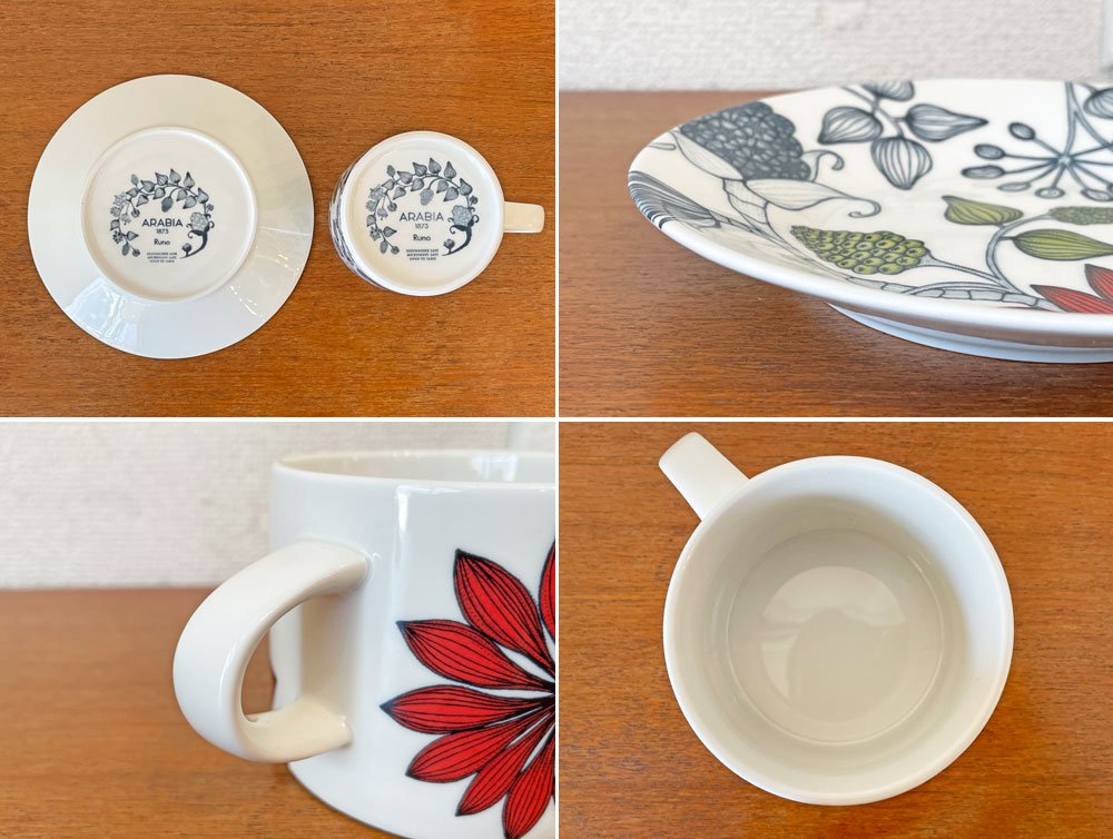 アラビア ARABIA ルノ Runo サマーレイ SUMMER RAY ティーカップ&ソーサー ヘイニ・リータフフタ 満水280ml 北欧食器 廃番 希少 B ◎