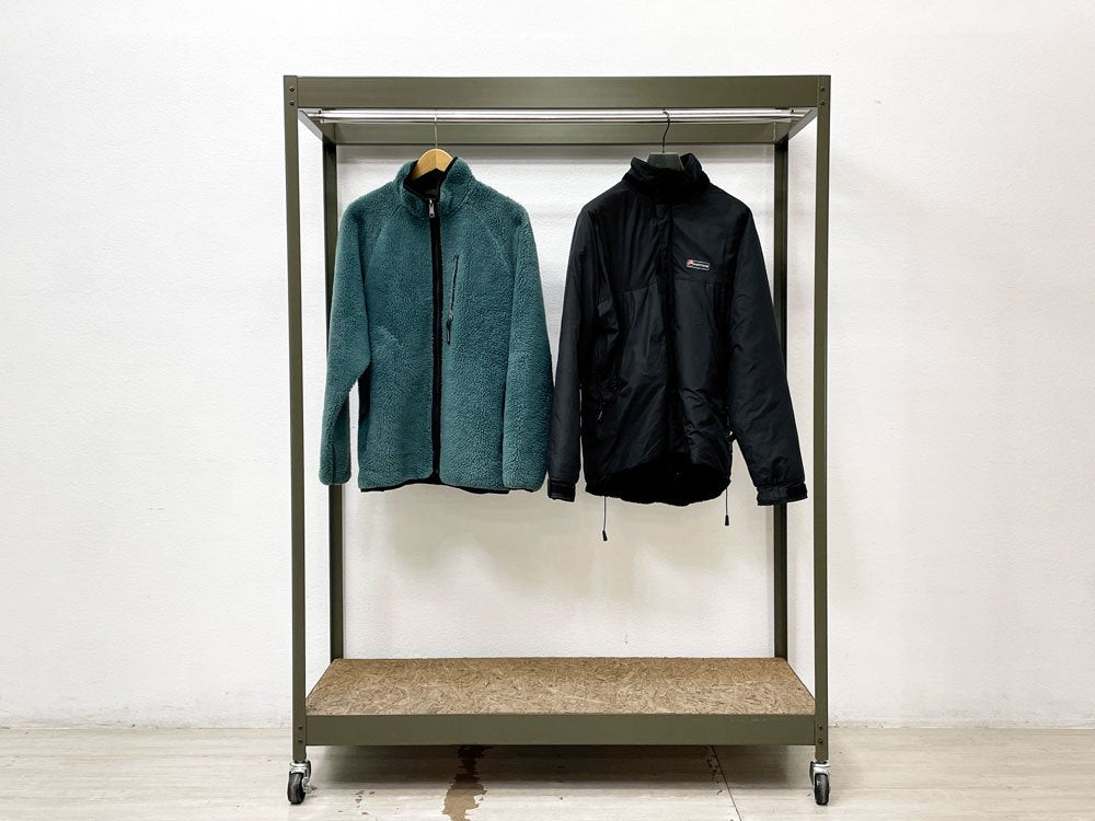 フレームの枠内に洋服を陳列し、ハンガーを掛けるポールはちょうど目線から死角になる為、生活感を軽減しながらお気に入りのアイテムを見せながら収納出来ます。ホームユースは勿論、古着屋さん等のショップ什器としても画になります。