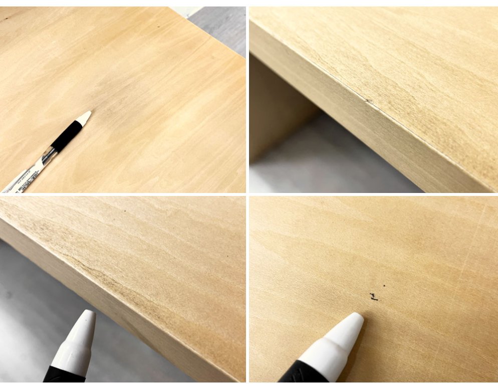 使用に伴う細かな擦れ傷や側面の薄っすらとしたヤケ、天板の黒ずみ、細かな突板の剥がれは見られるものの、いずれも大きく目立つものではございません。ほか上端は5cm程カットされておりますがご使用に問題となるダメージは無く、今後とも気持ち良くお使い頂けるUSED品として概ね良好なコンディションを保っております。