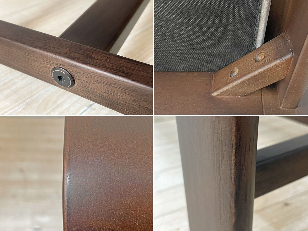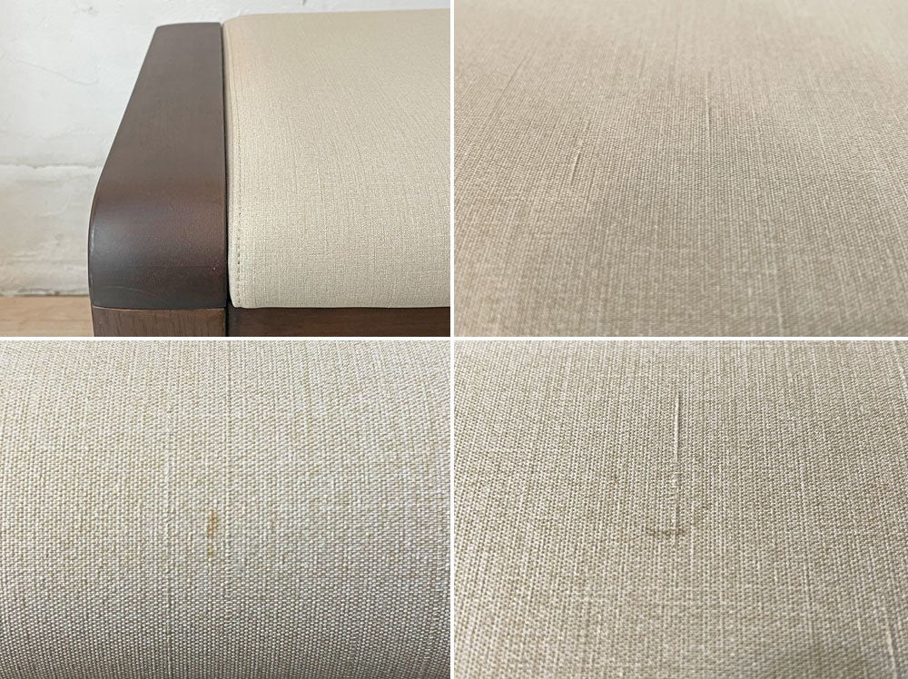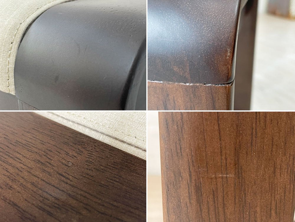 座面のファブリックには僅かに、取り切れない小さな染み汚れが数箇所ございます。また、フレームには軽微な擦れや傷、打痕が見受けられます。