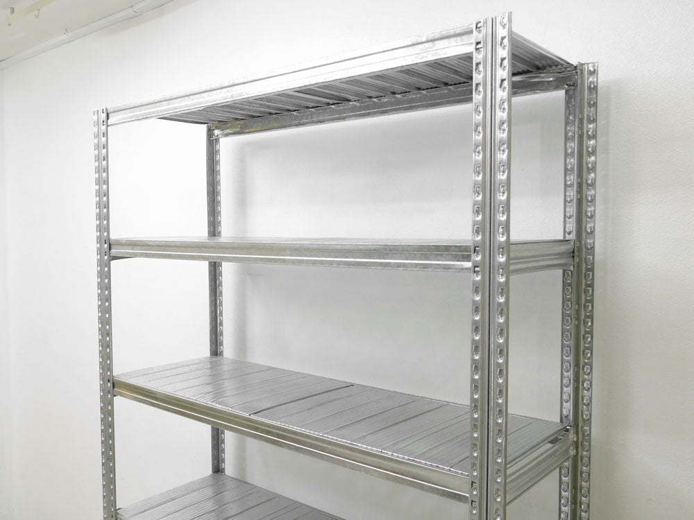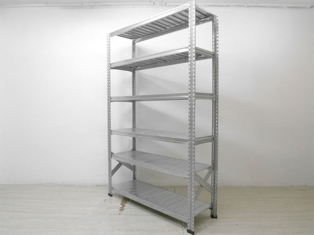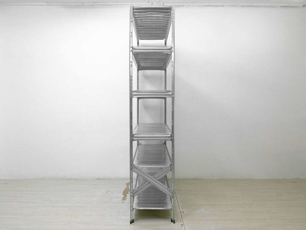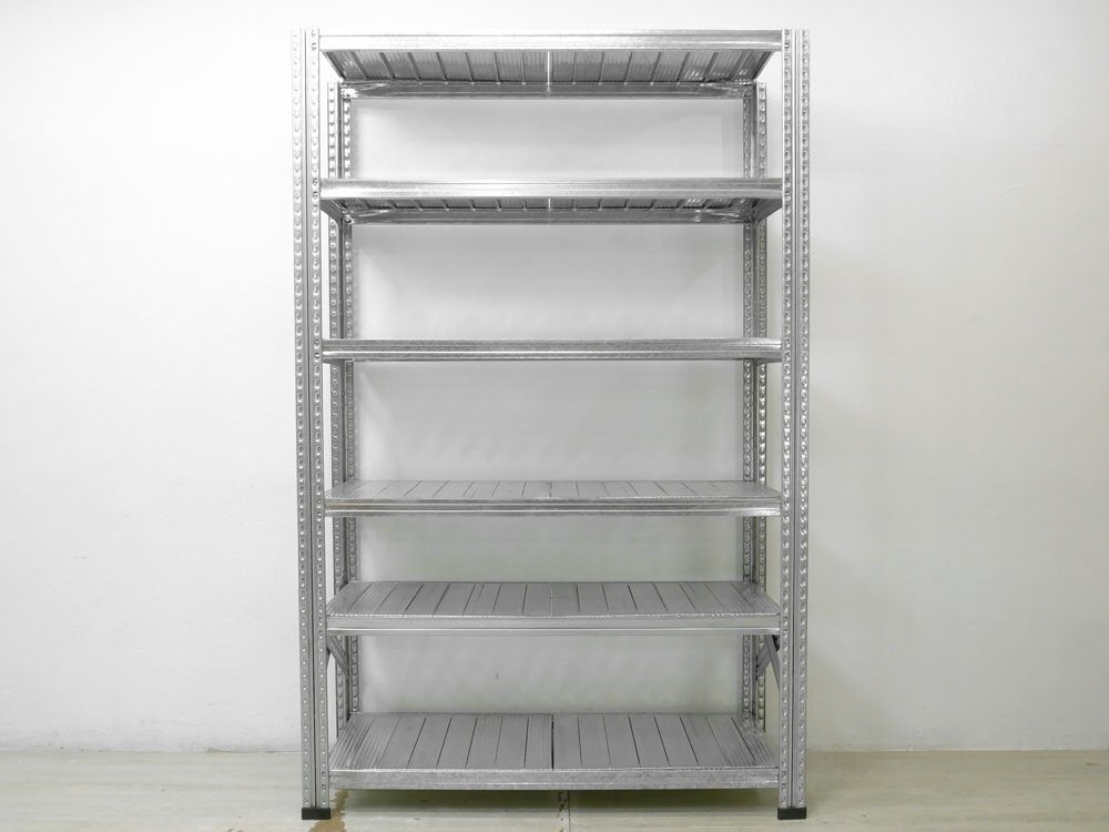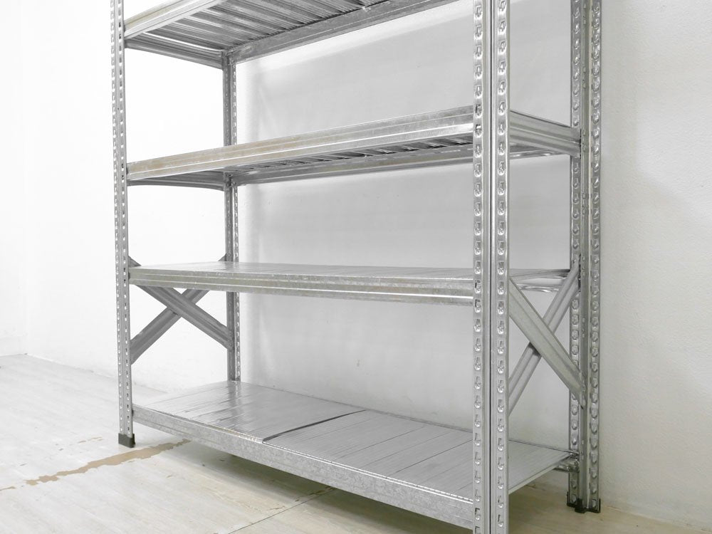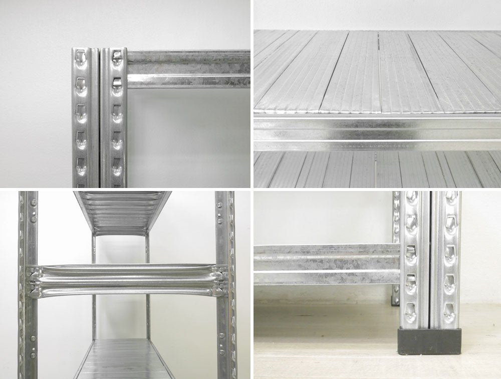 最大の特長は、ボルトを使わず棚板を支える独自のリブ構造。その耐荷重は1枚あたりなんと150kgともいわれます。