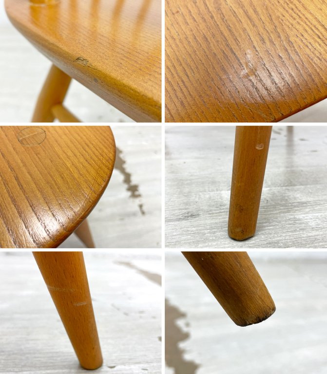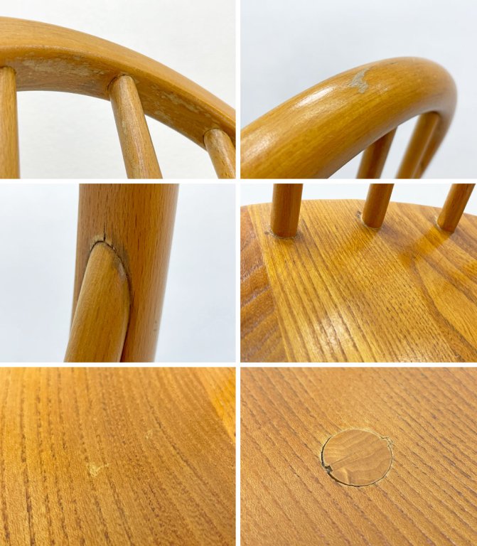 また背もたれスポークとフレームの継ぎ目一箇所に小さなヒビ、脚部の先端一箇所に僅かなチップが見られますが、いずれも実用強度に問題はございません。