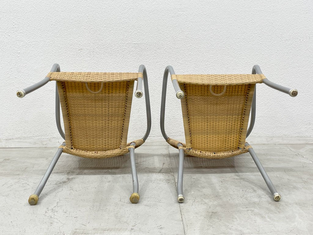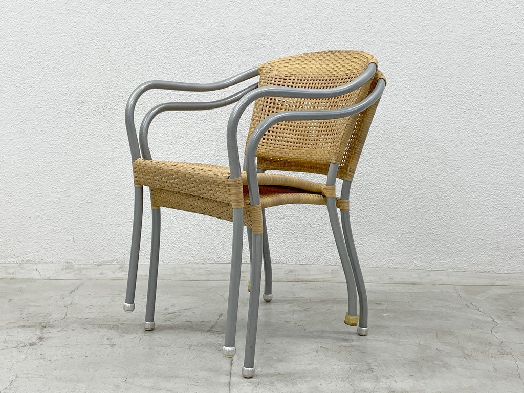 こちらは、人工ラタンを丁寧に張り込んだスタッキングアームチェアの2脚セットとなります。