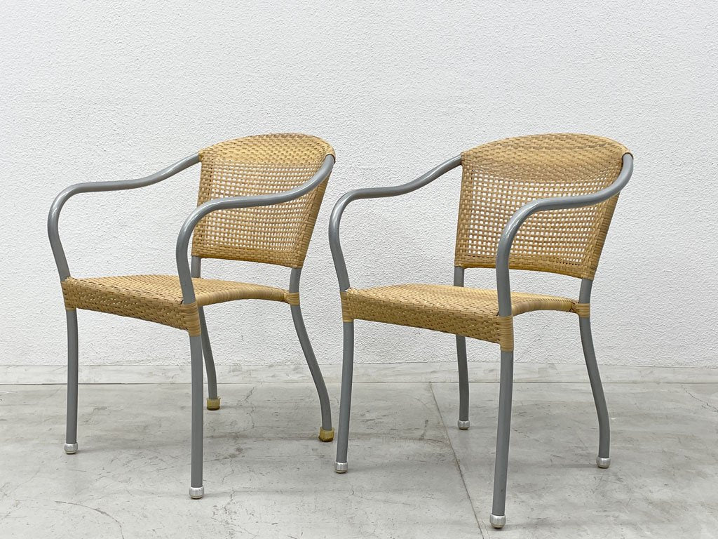 アームチェア 2脚セット 人工ラタン スタッキングチェア ガーデンファニチャー 北欧 デンマーク