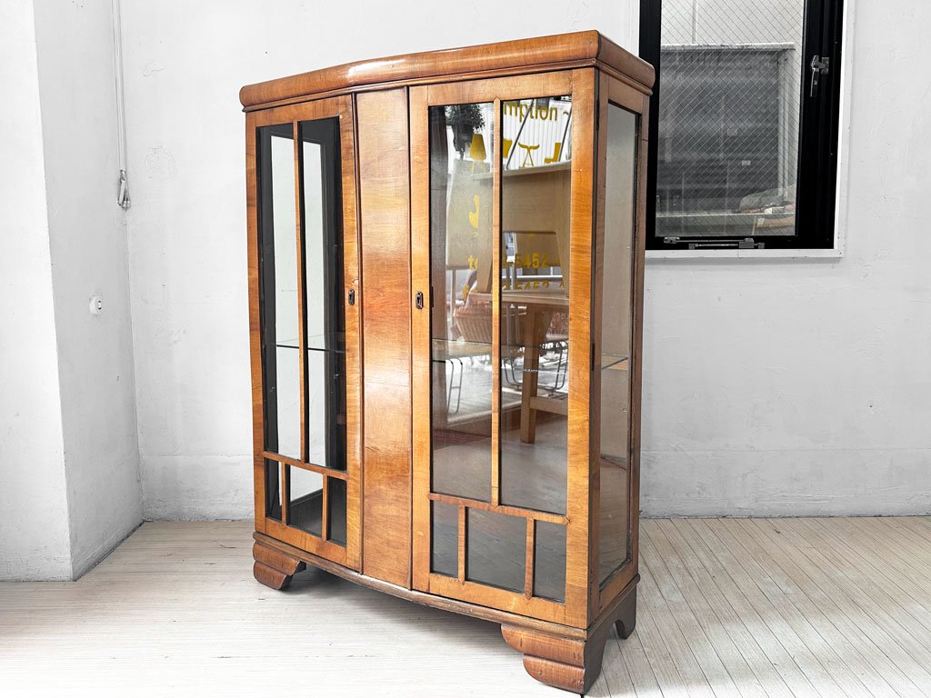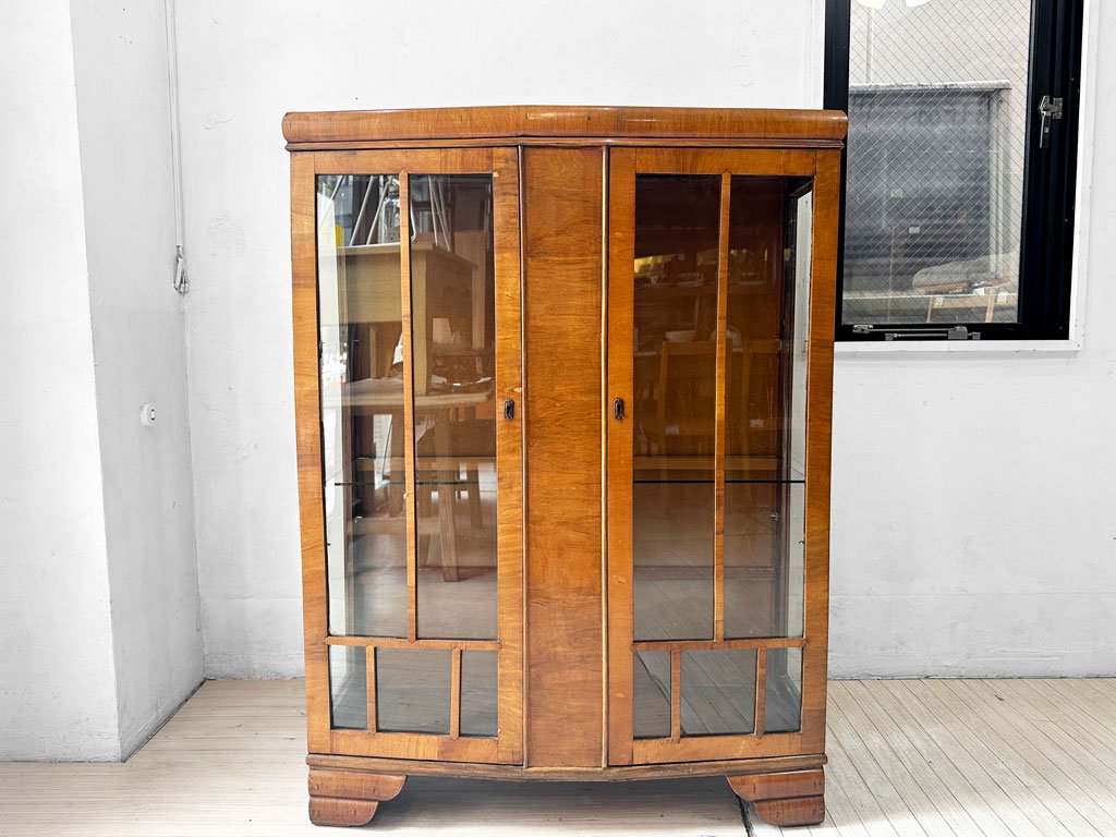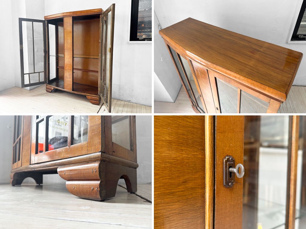UKビンテージ Vintage ガラスキャビネット コレクションケース ディスプレイケース 鍵付 英国アンティーク 現状品 ★