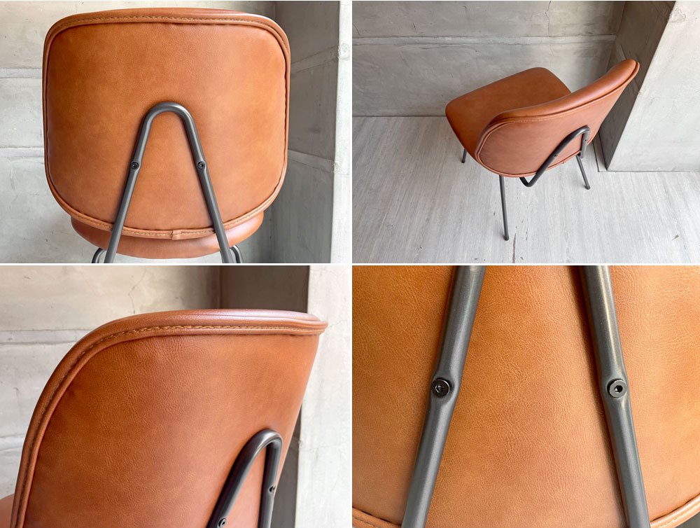 張地にはPVCレザーを使用しており触り心地も良く、お手入れも簡単で水や汚れにも強い為、ダイニングからワークシーンのチェアとしても幅広くお使い頂くことが出来そう。