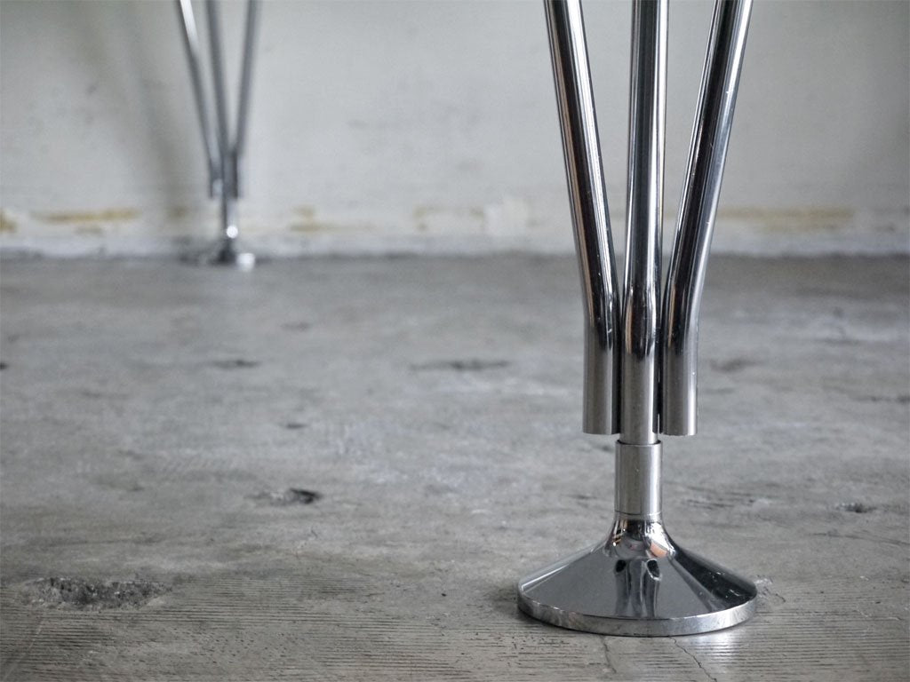軽量のクロームメッキ・スチール製の脚はすっきりと美しく、安定感を持って見た目のバランスと堅牢性を支えます。