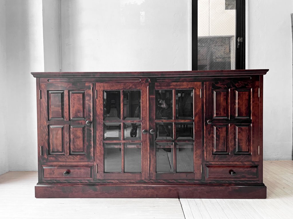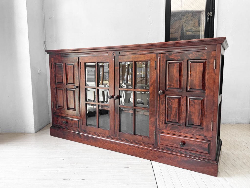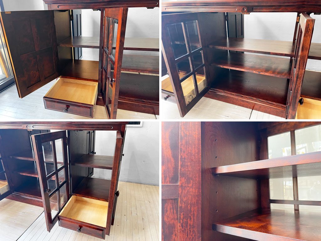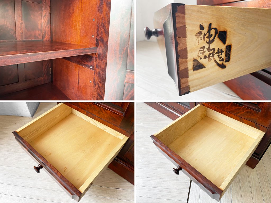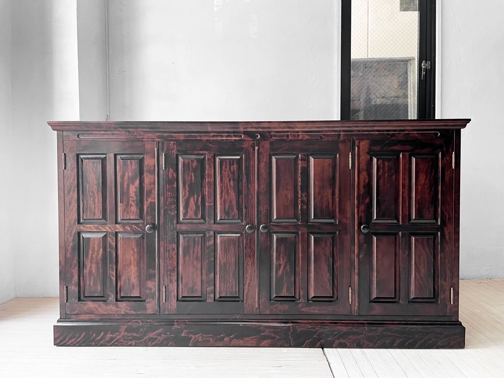 カムイ 神居民芸 サイドボード 両面仕様 リビングボード キャビネット 樺無垢材 北海道旭川家具 和光 民芸家具 ★